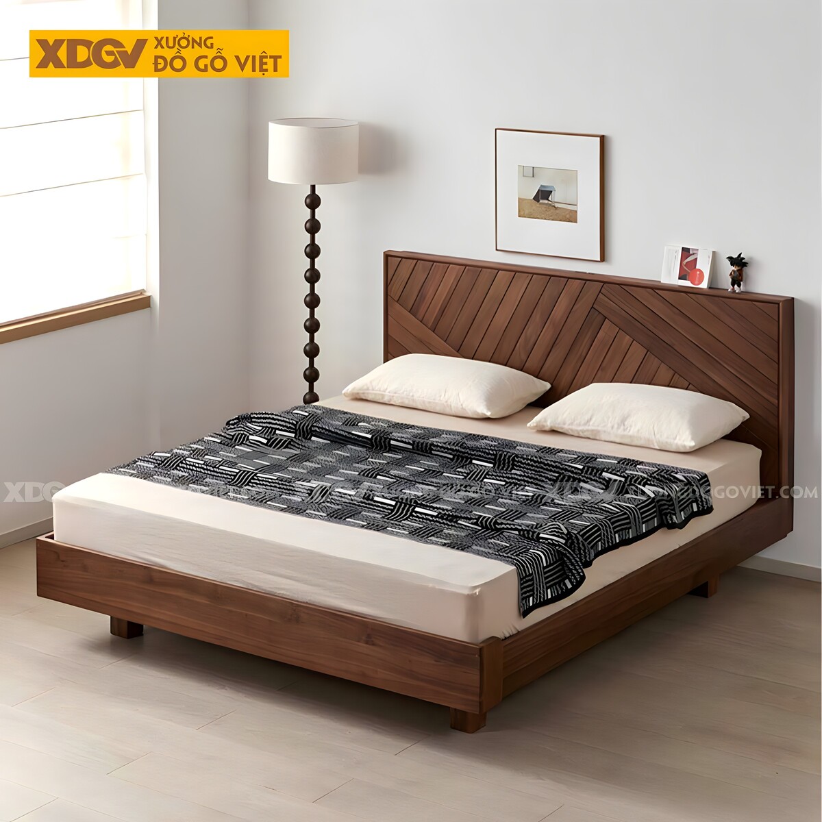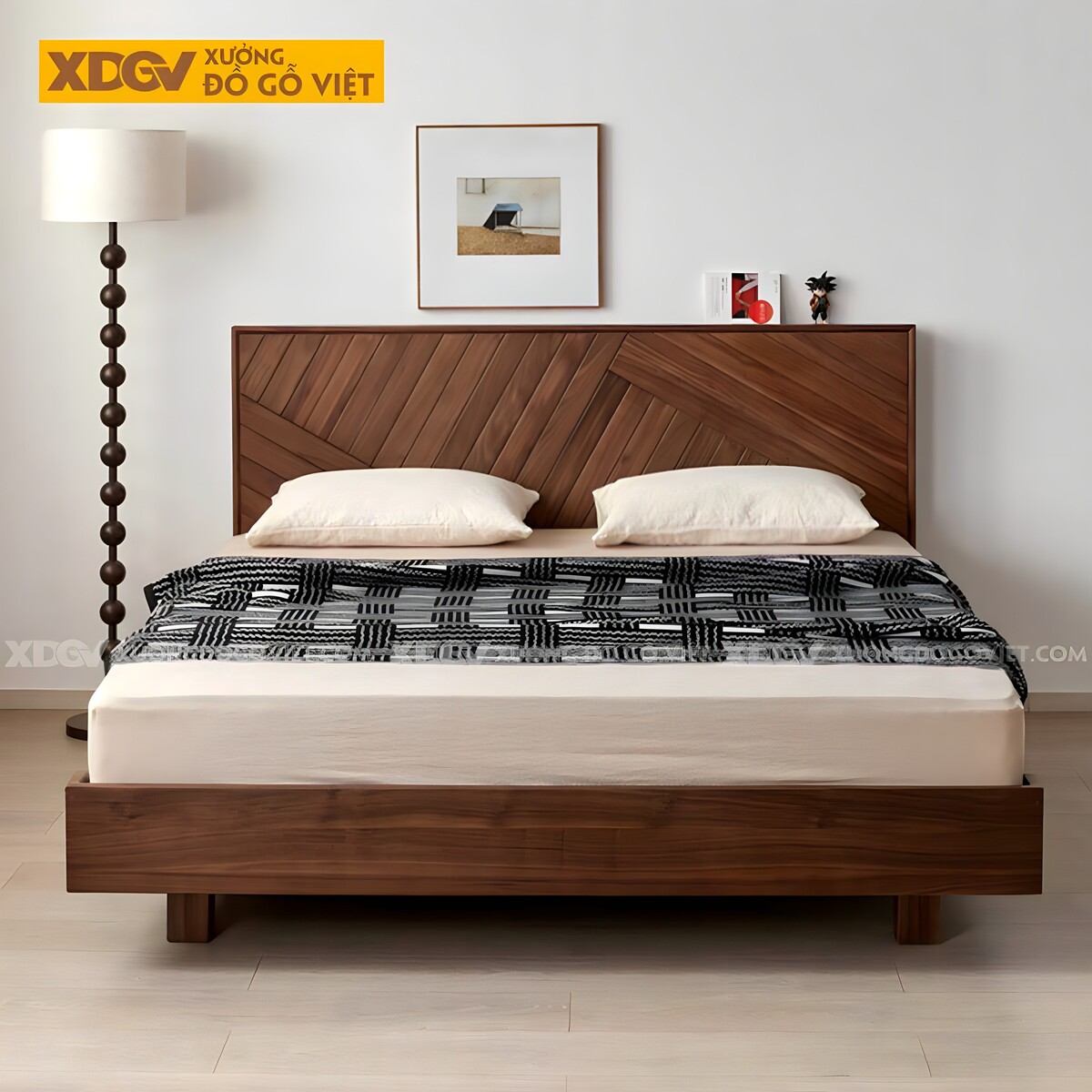 Giường Ngủ Gỗ Óc Chó Hiện Đại Đa Năng Đầu Kẻ Chỉ Dọc...