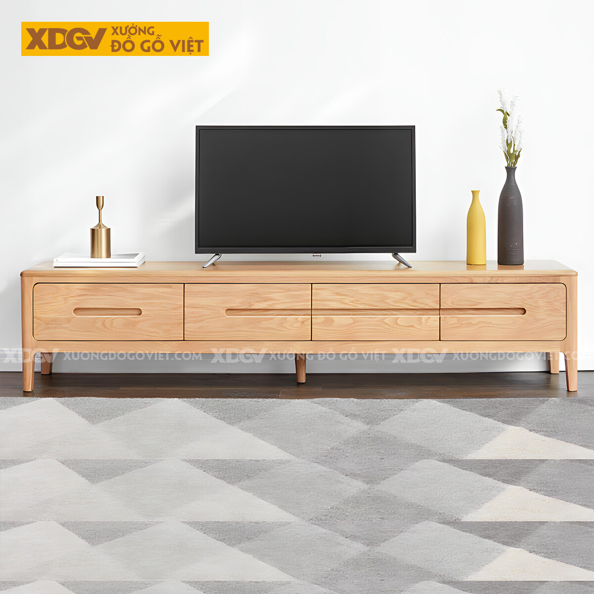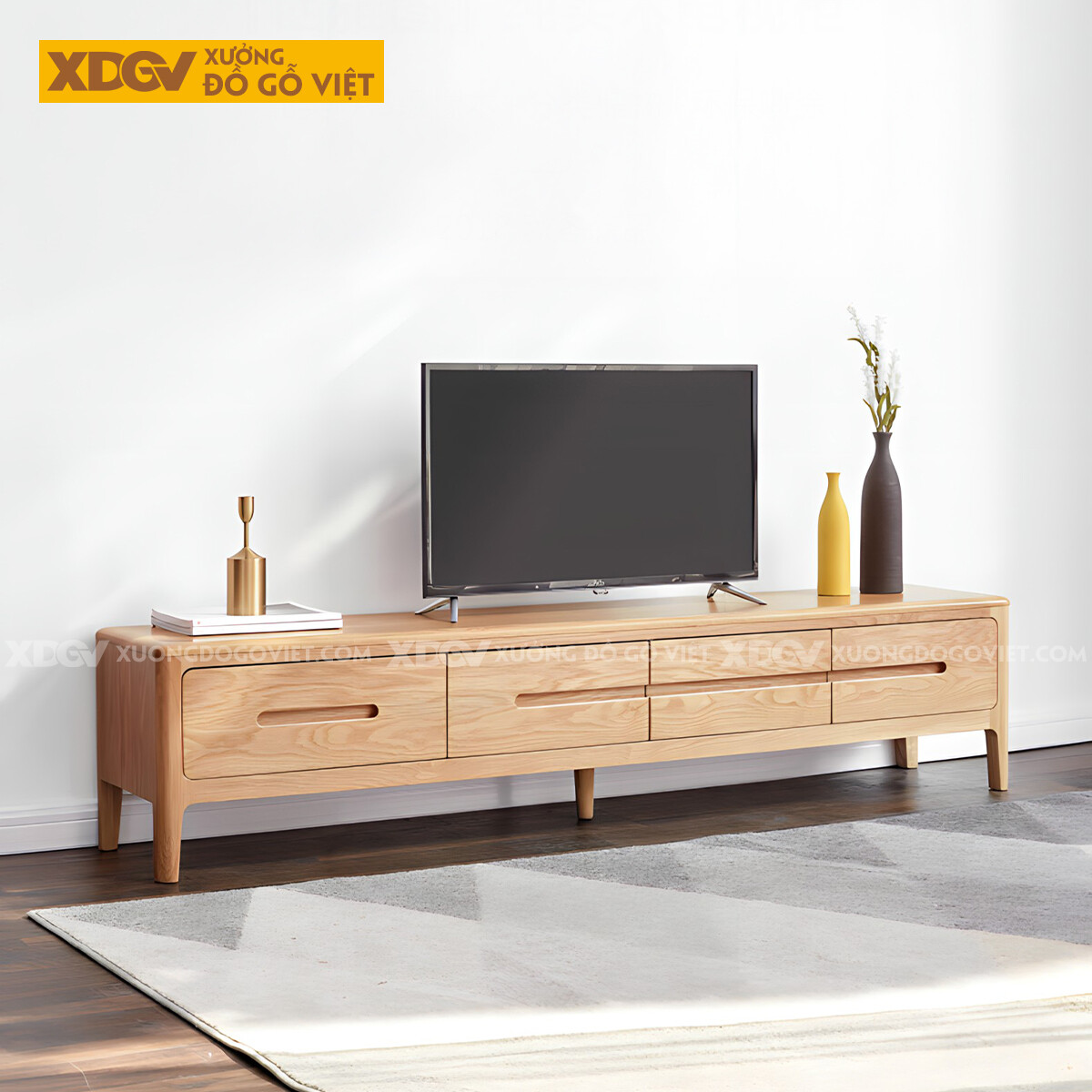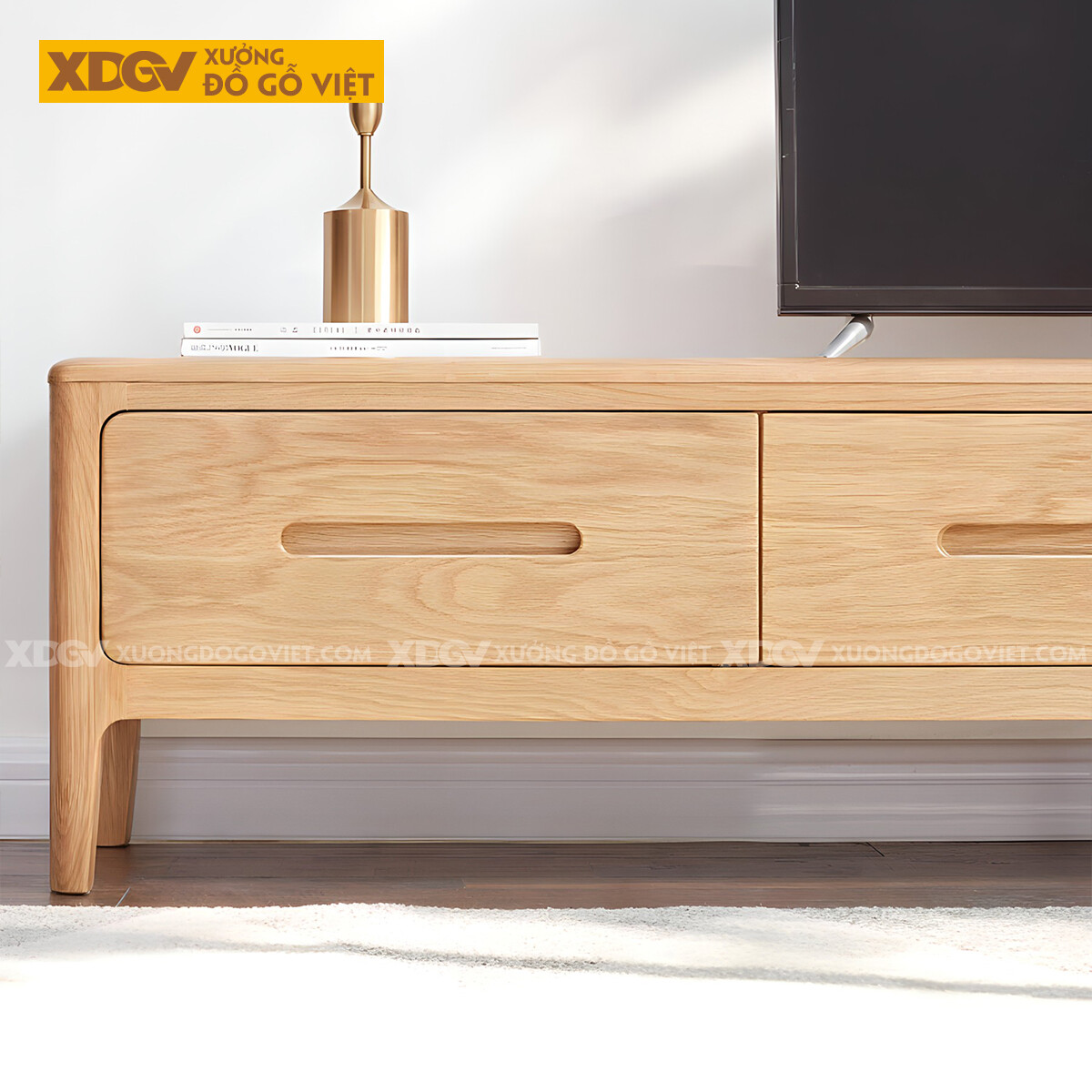 Kệ Tivi Gỗ Sồi Vân Tự Nhiên Tay Âm Khoét Giữa Liền Mạch