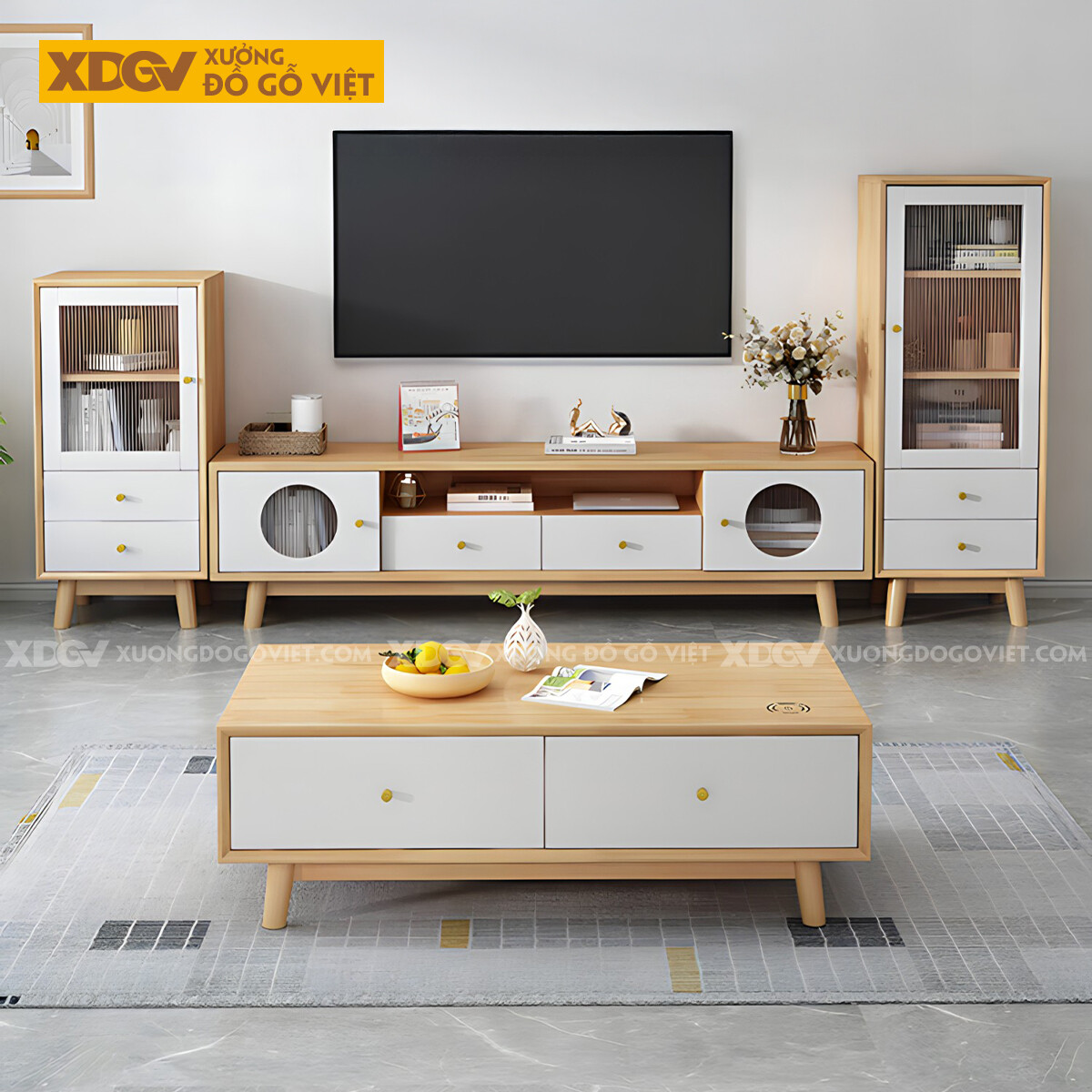 Kệ Tivi Phòng Khách Gỗ Sồi Mặt Đá Hiện Đại Nhiều Hộc Ngăn