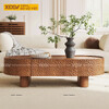 Bàn Sofa Phòng Khách Gỗ Sồi Trụ Tròn Ghép Thanh Phối Kệ Tủ