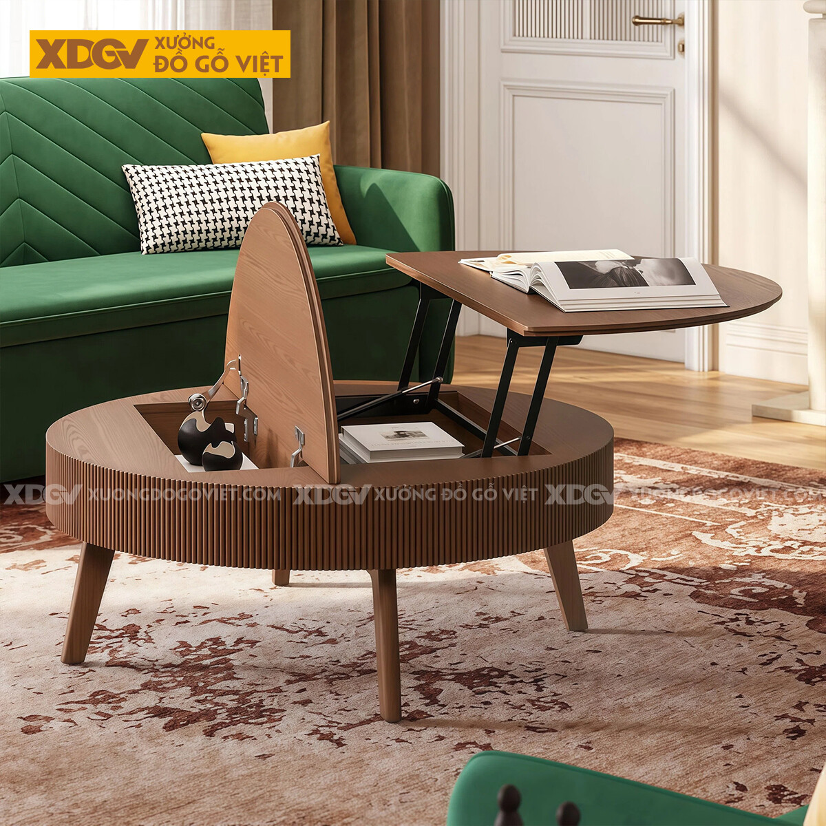 Mẫu Bàn Sofa Phòng Khách Gỗ Sồi Chân Cao Kết Hợp Khoang Chứa