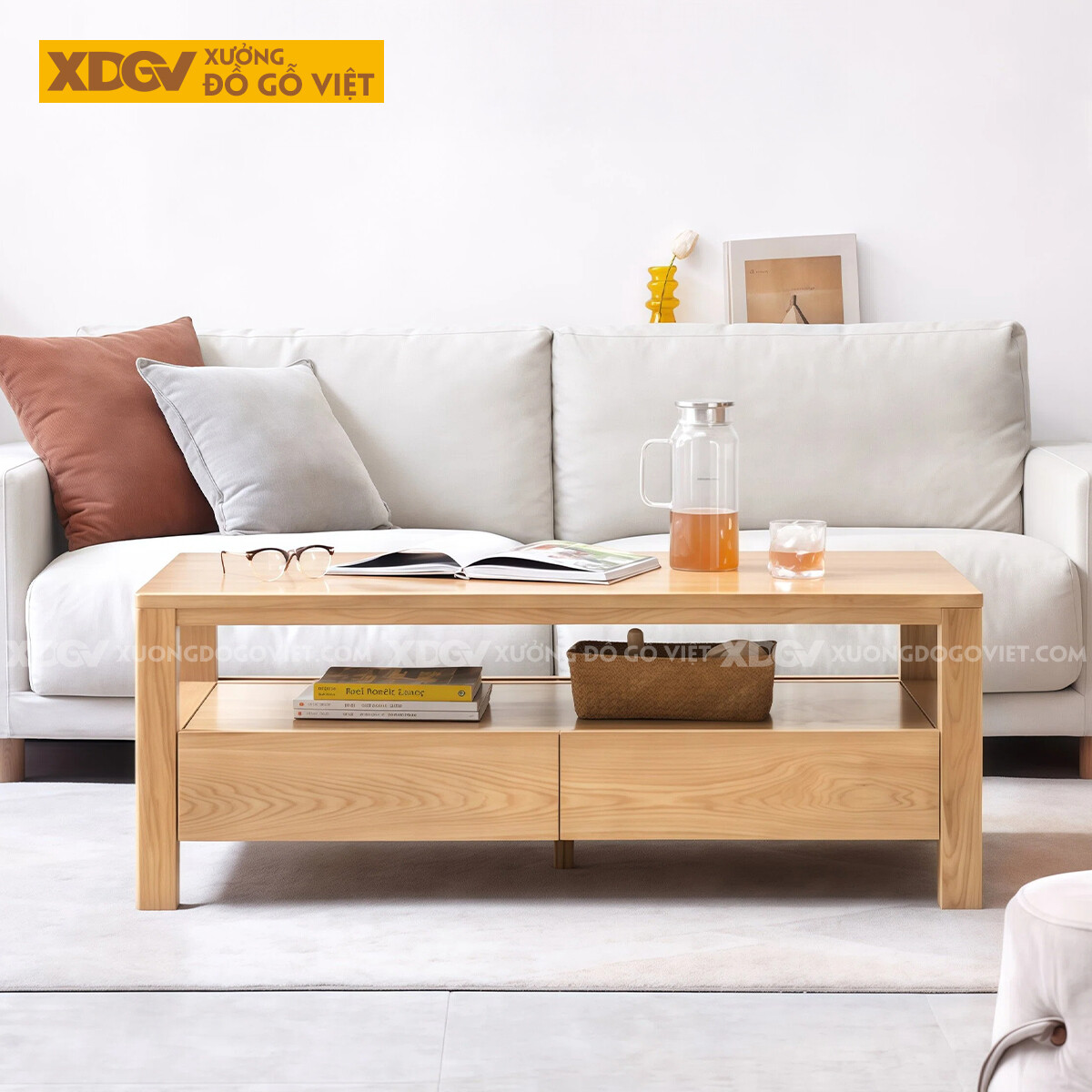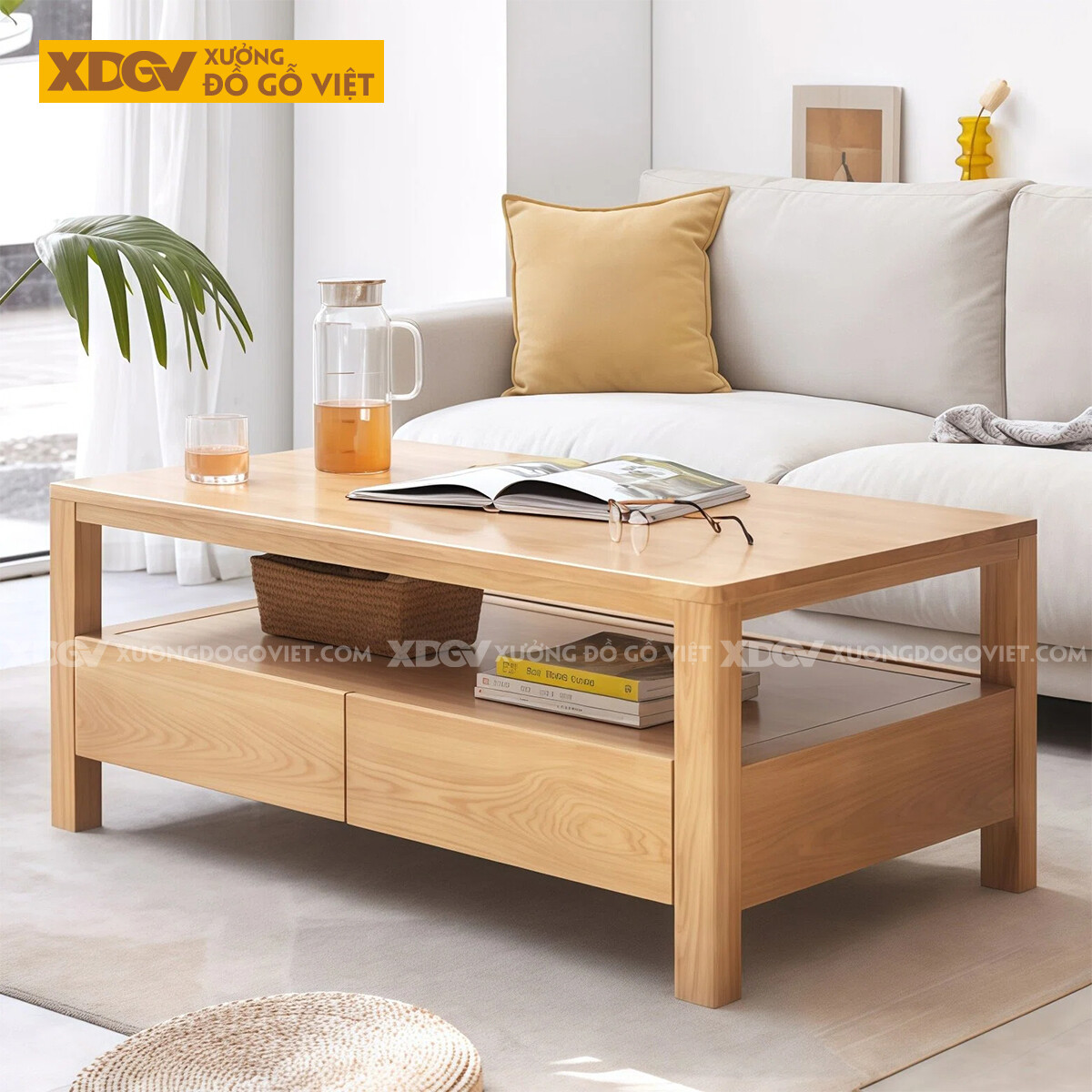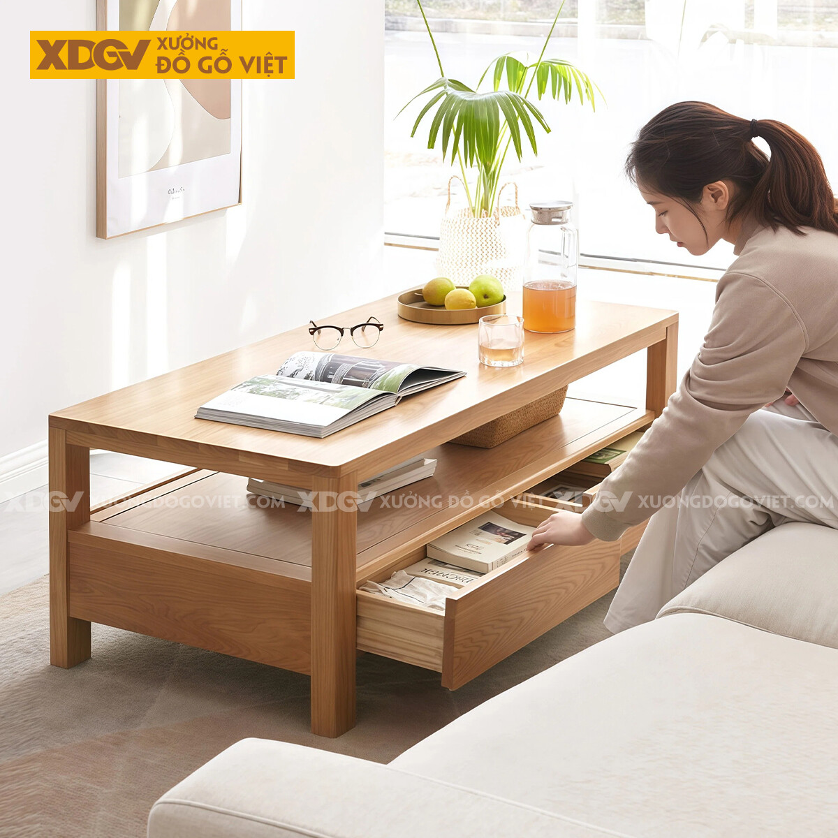 Mẫu Bàn Sofa Phòng Khách Gỗ Sồi Chân Cao Tích Hợp Ngăn Kéo