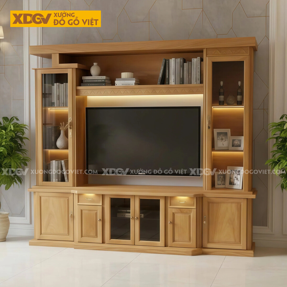 Mẫu Kệ Tivi Kèm Tủ Trưng Bày Gỗ Gõ Đỏ Phối Tủ Ngang Chân...