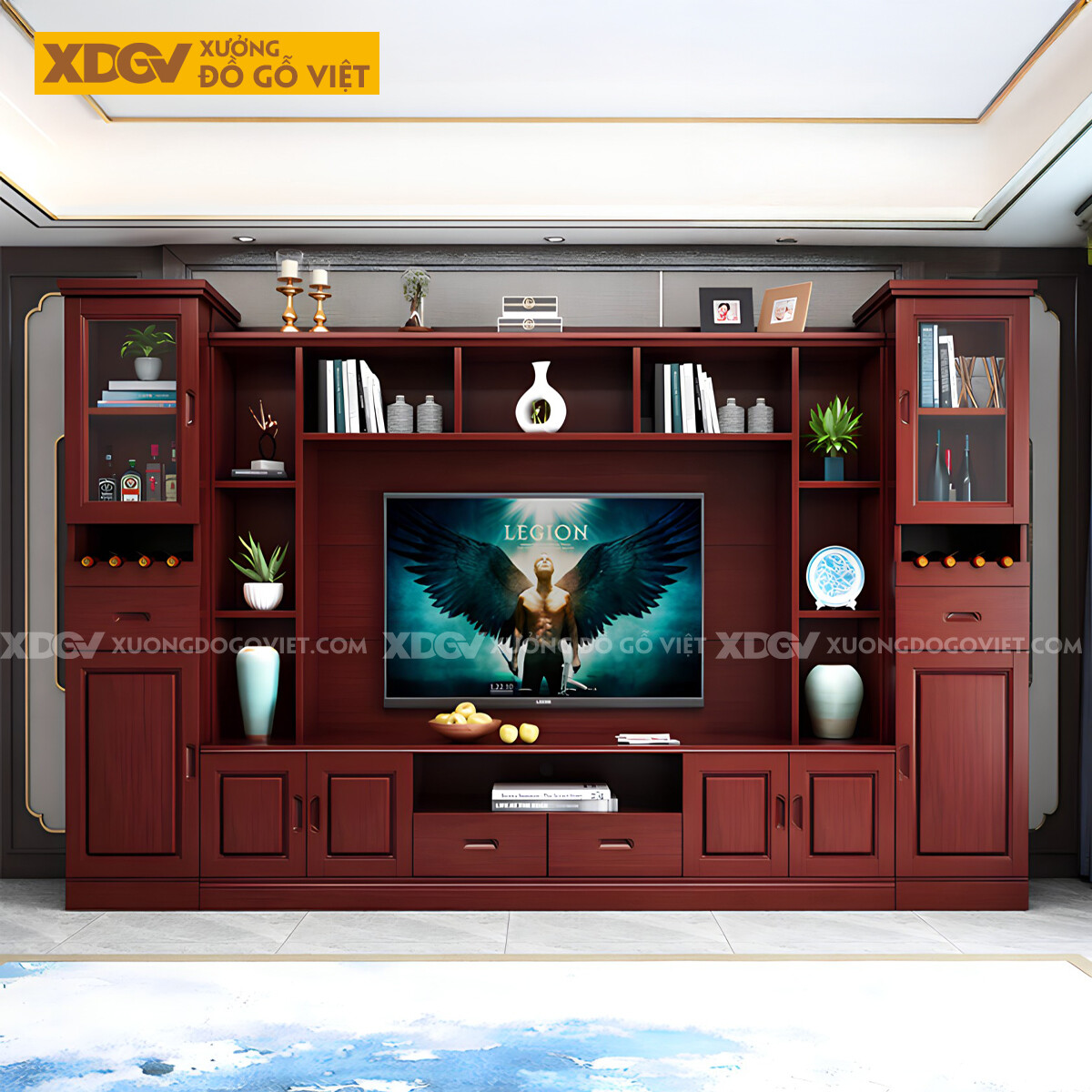 Mẫu Kệ Tivi Cao Su Phòng Khách Kèm Tủ Kính Có Kệ Trang Trí