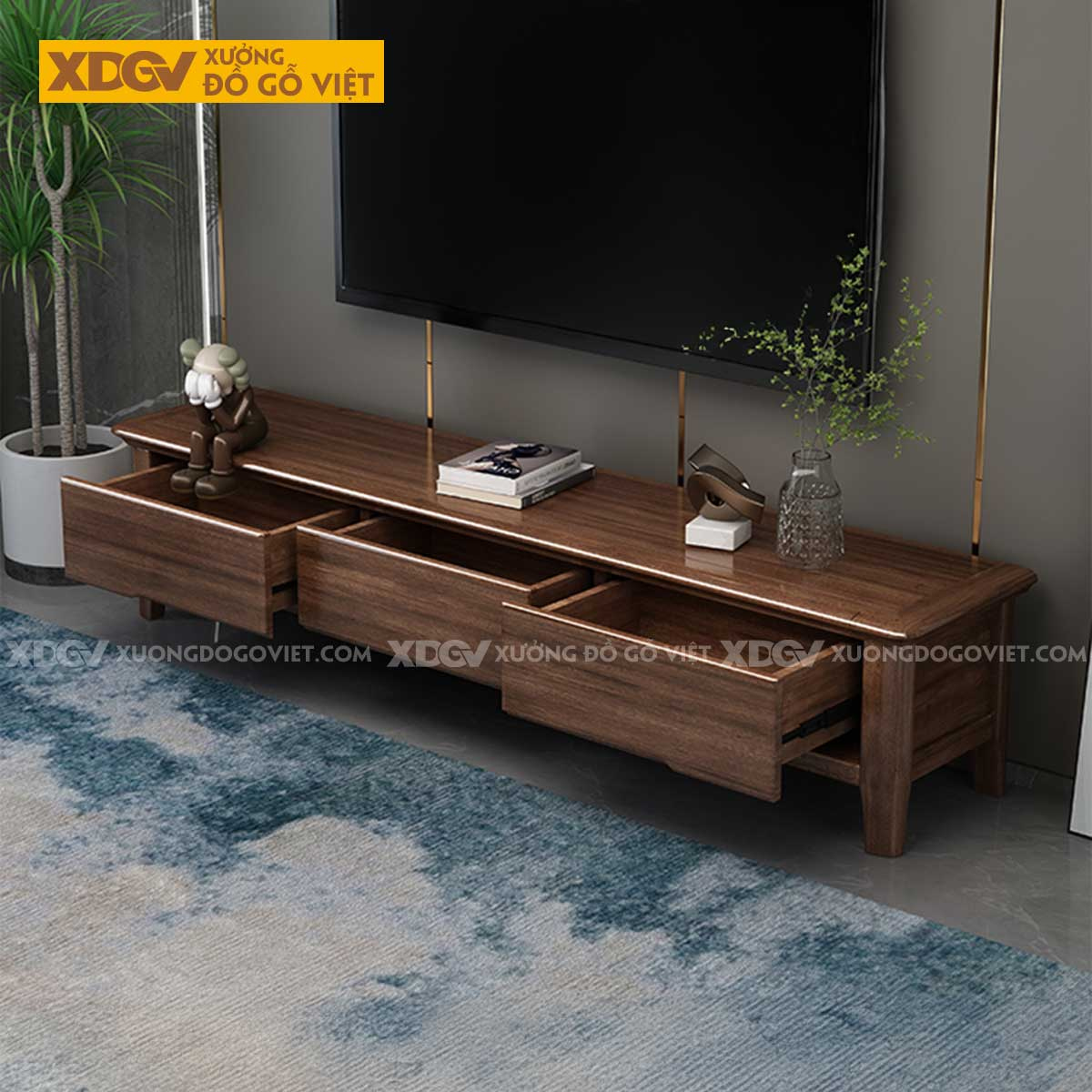Mẫu Kệ Tivi Gỗ Veneer Óc Chó 3 Ngăn Hộc Kéo