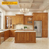 Mẫu Tủ Bếp Gỗ Gõ Đỏ Chữ L Bố Trí Thông Minh Phối Cánh Kính