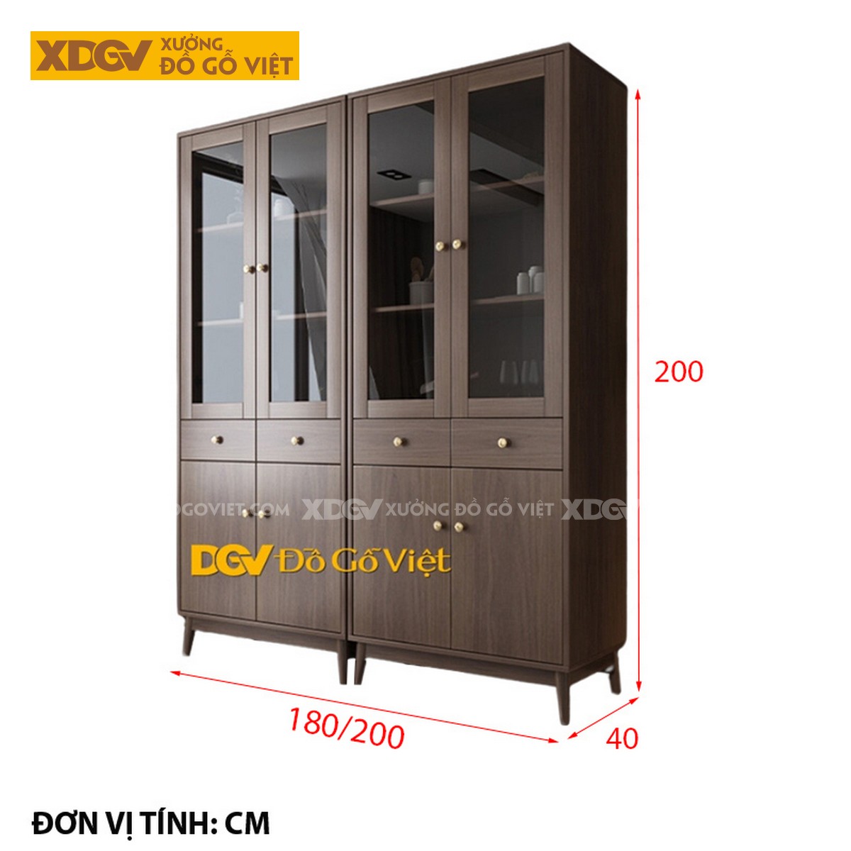 Tủ Chén Bát Khung Gỗ Công Nghiệp Cánh Kính