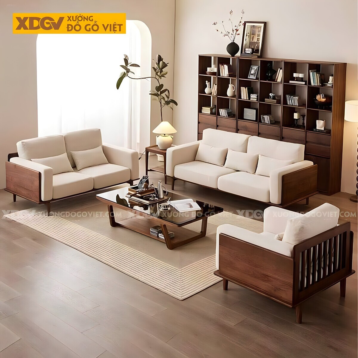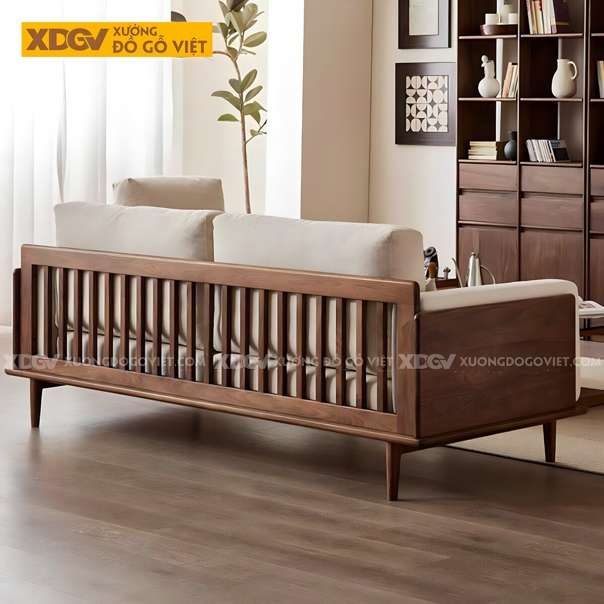 Sofa Gỗ Óc Chó Hiện Đại Á Đông Góc Cạnh Bo Tròn Mềm Mại