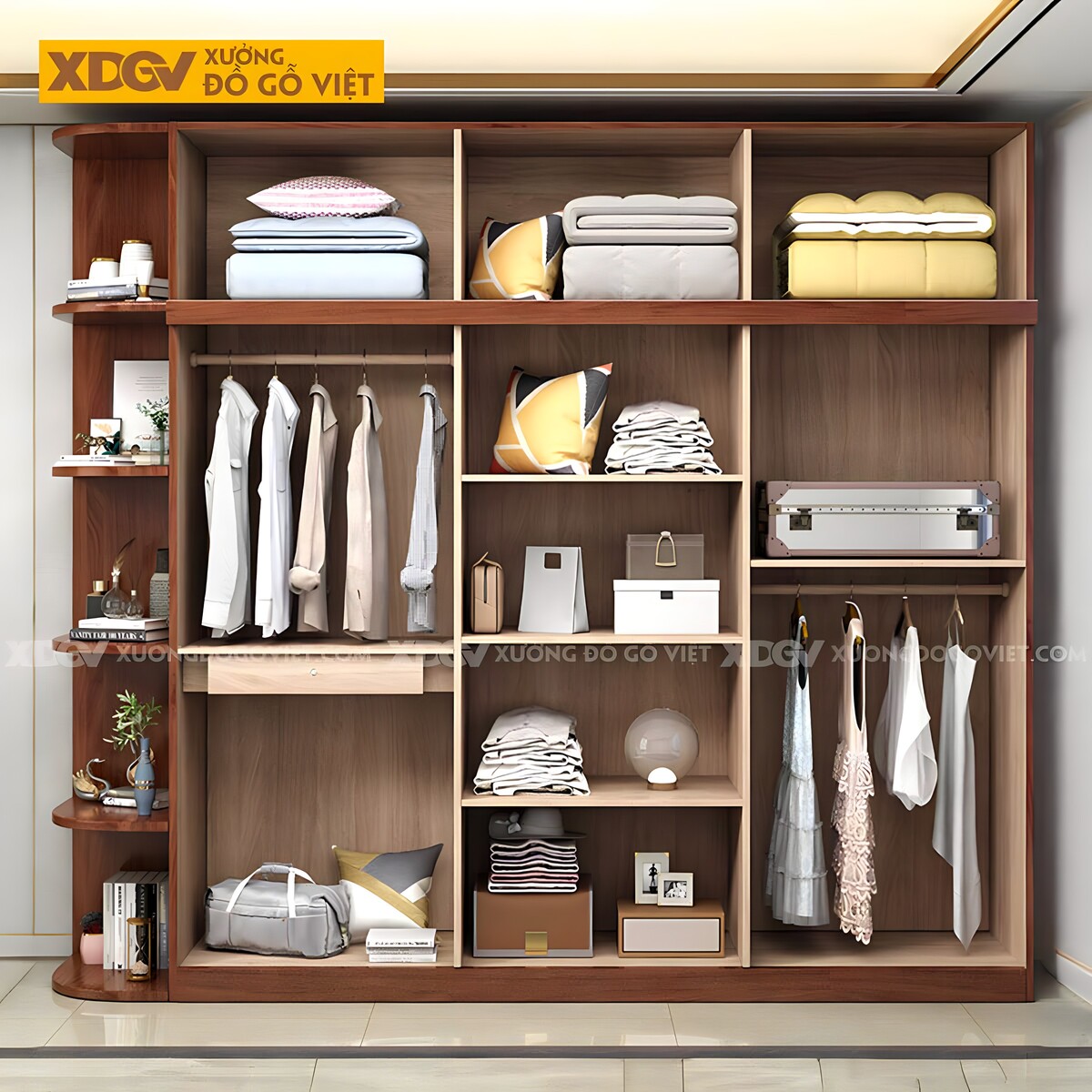 Tủ Áo Gỗ Gõ Đỏ Vuông Vức Kịch Trần Kệ Trang Trí Bo Góc Đẹp