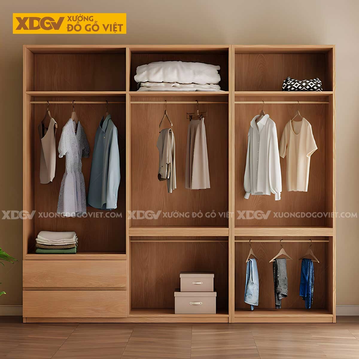 Tủ Quần Áo Gỗ Sồi Kịch Trần 6 Buồng Không Gian Lưu Trữ Lớn