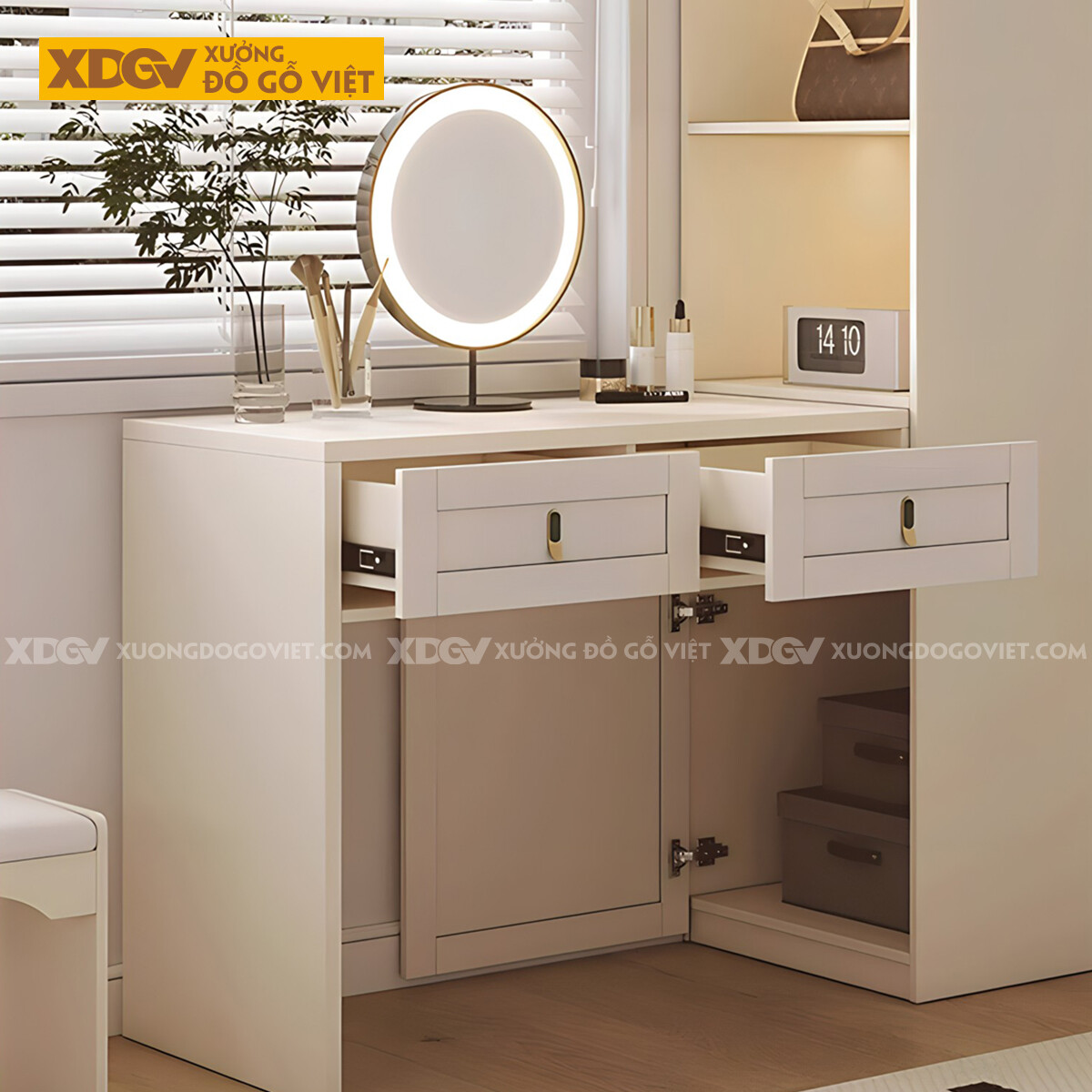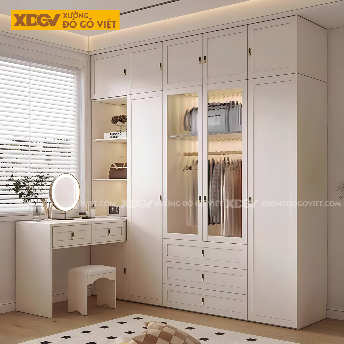 Tủ Áo Quần Gỗ Cao Su Trắng Kết Hợp Bàn Trang Điểm Góc L