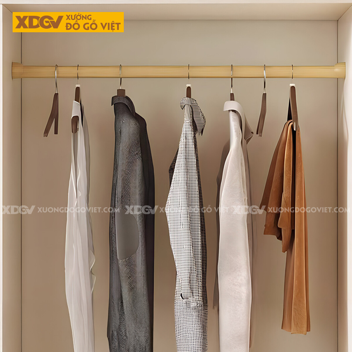 Tủ Treo Áo Gỗ Cao Su Kịch Trần Cánh Sơn Trắng Tay Âm Dưới