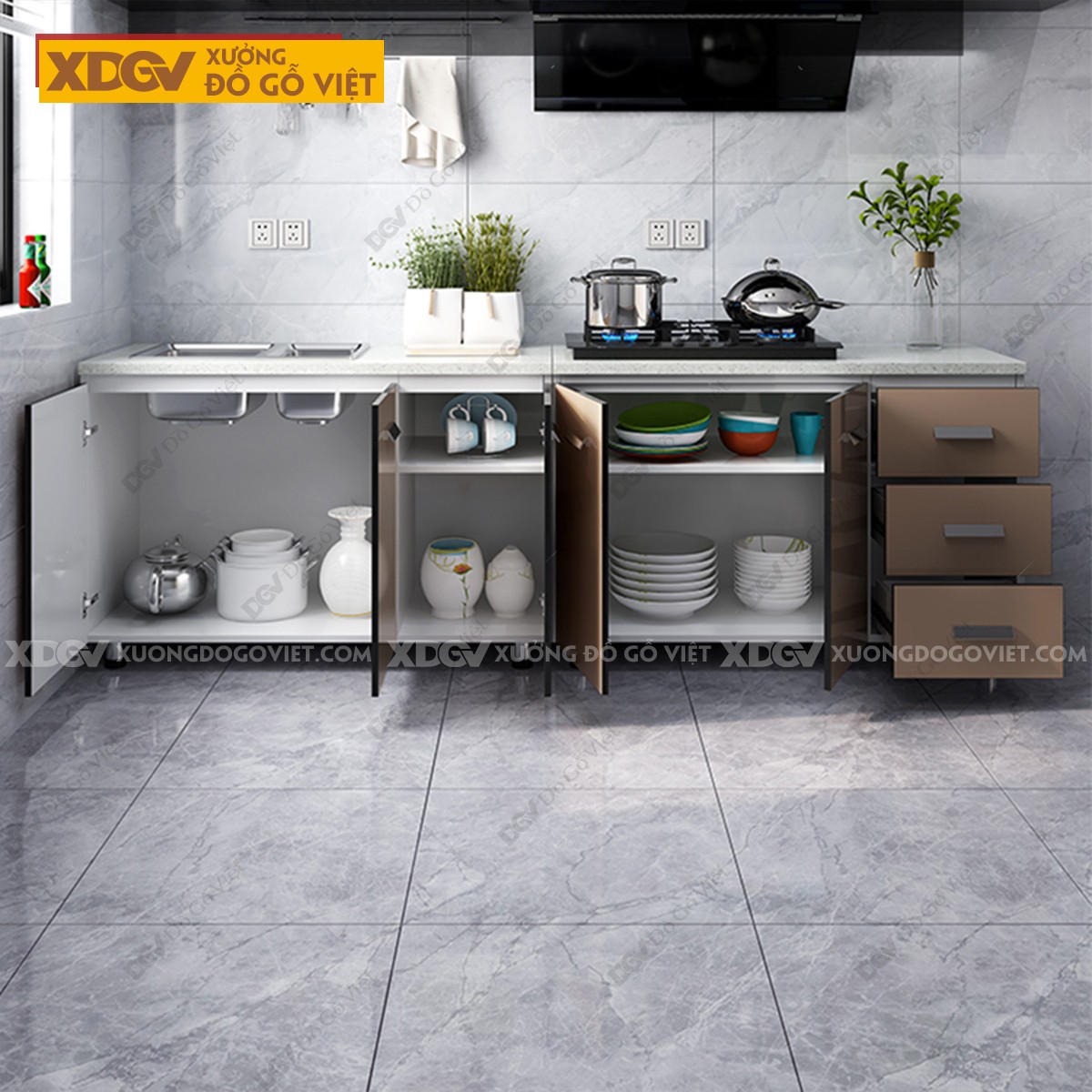 Tủ Bếp Gỗ MDF Công Nghiệp X6802