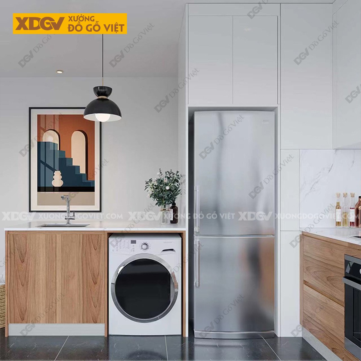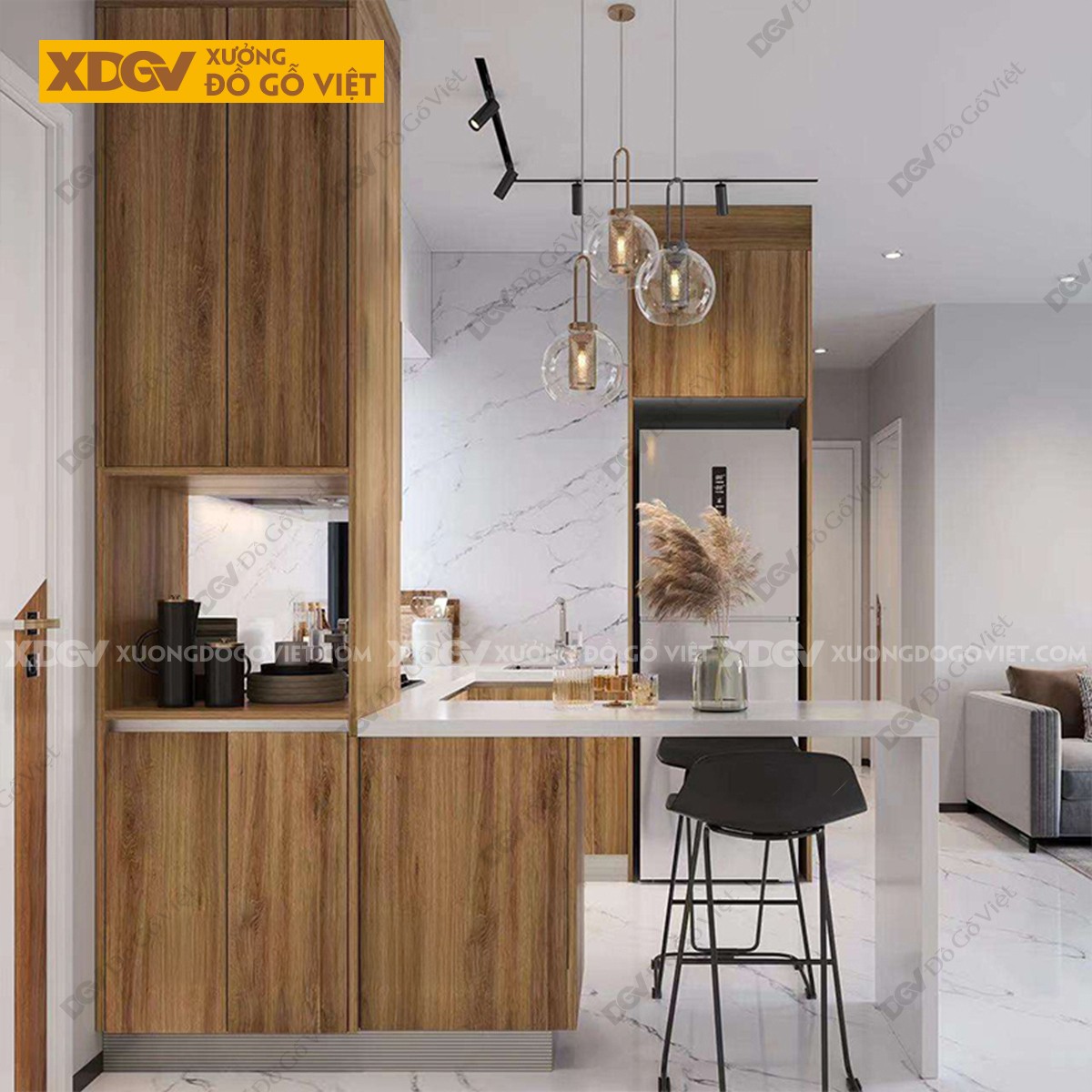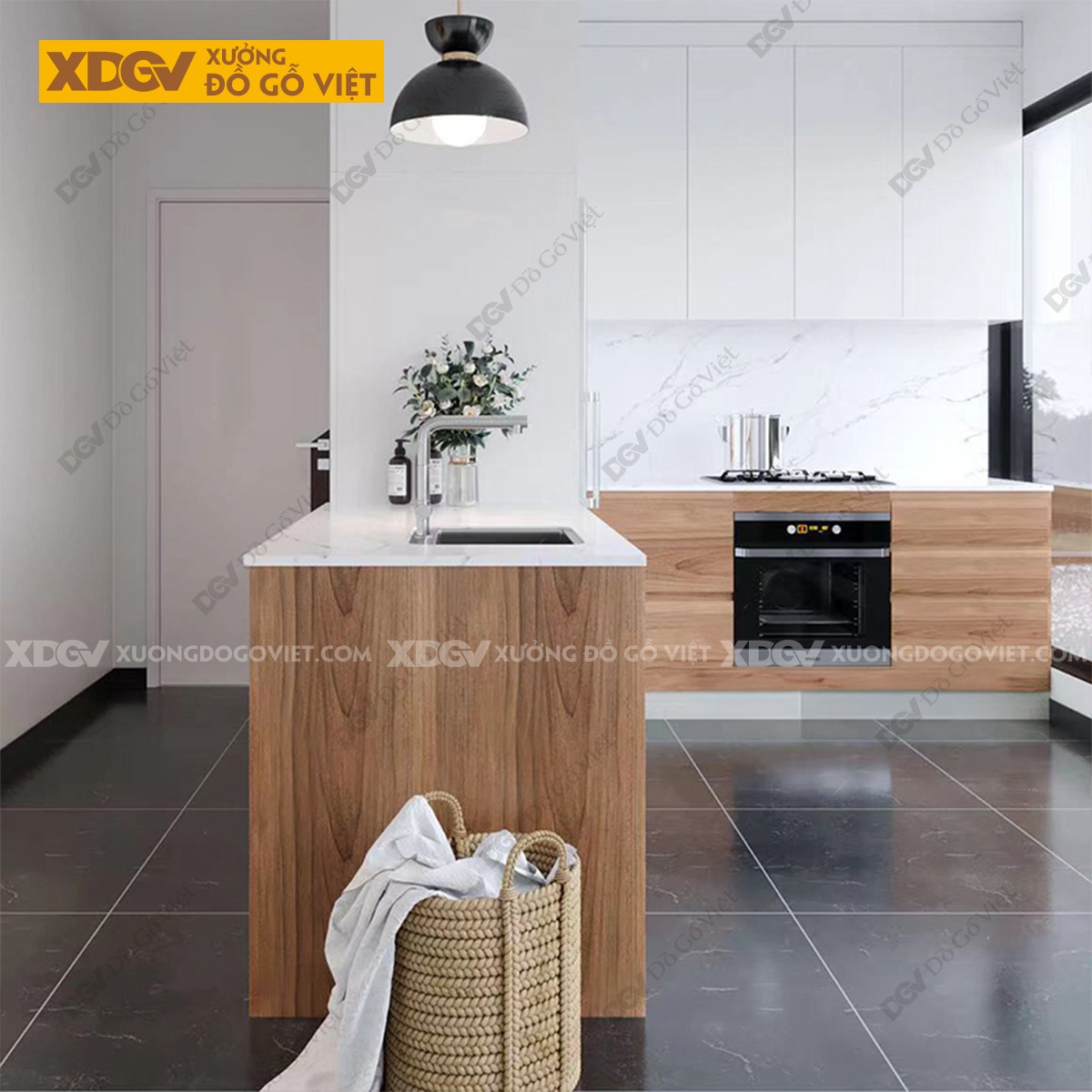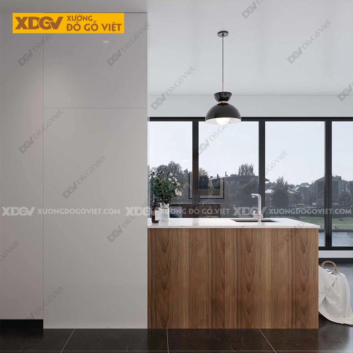 Hàng thi công theo yêu cầu. Chất liệu: MDF lõi xanh chống ẩm phủ Melamine chống trầy. Tình trạng: Hàng mới 100%. Thời gian giao hàng: Đặt hàng 7 đến 10 ngày. Lưu ý: Giá mét dài trên chưa bao gồm phụ kiện tay nắm cao cấp + phụ kiện gắn bên trong tủ bếp.