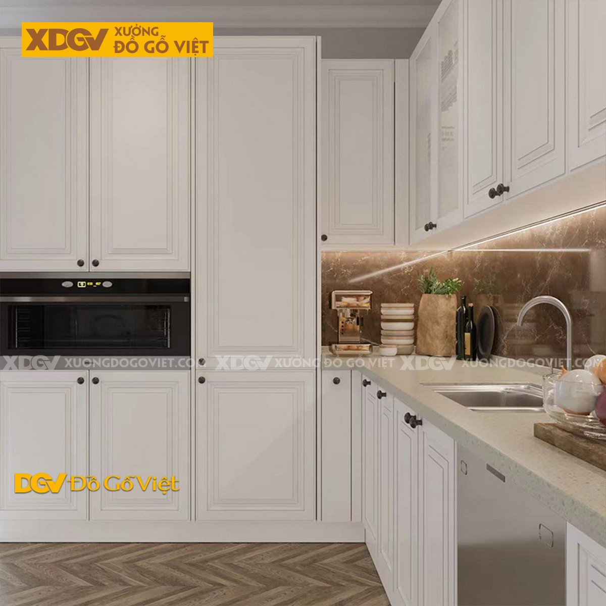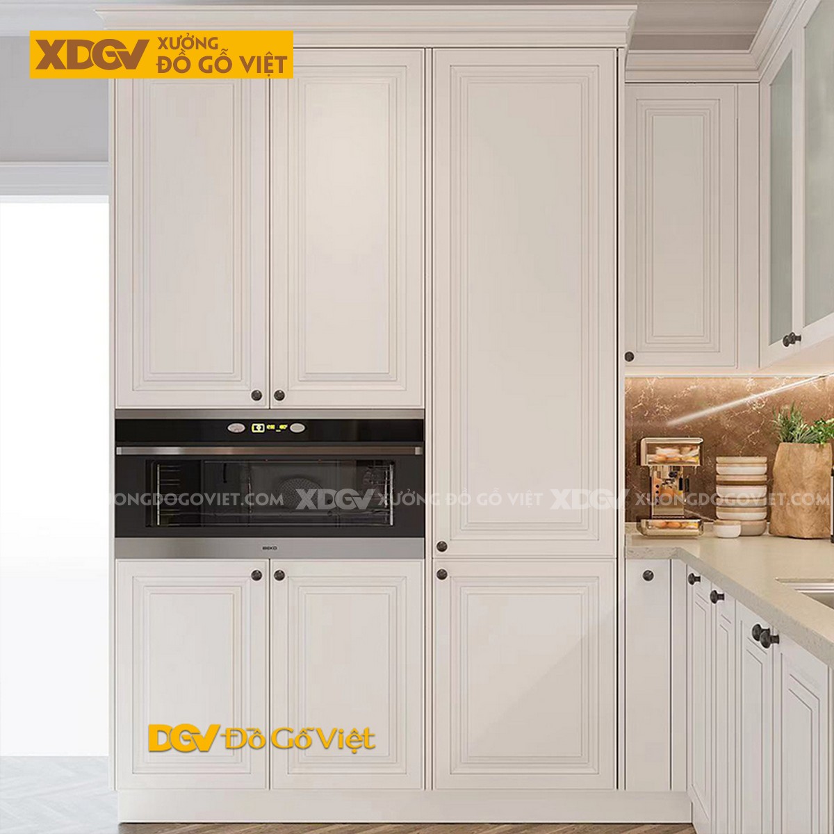 Giá mét dài trên chưa bao gồm sơn. Chất liệu: Gỗ tự nhiên vân sồi. Tình trạng: Hàng mới 100%. Thời gian giao hàng: Đặt hàng 7 đến 10 ngày. Lưu ý: Giá mét dài trên chưa bao gồm phụ kiện tay nắm cao cấp + phụ kiện gắn bên trong tủ bếp.