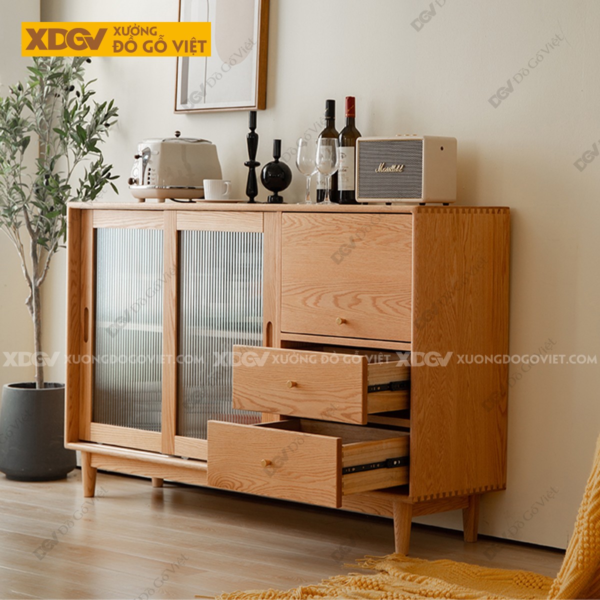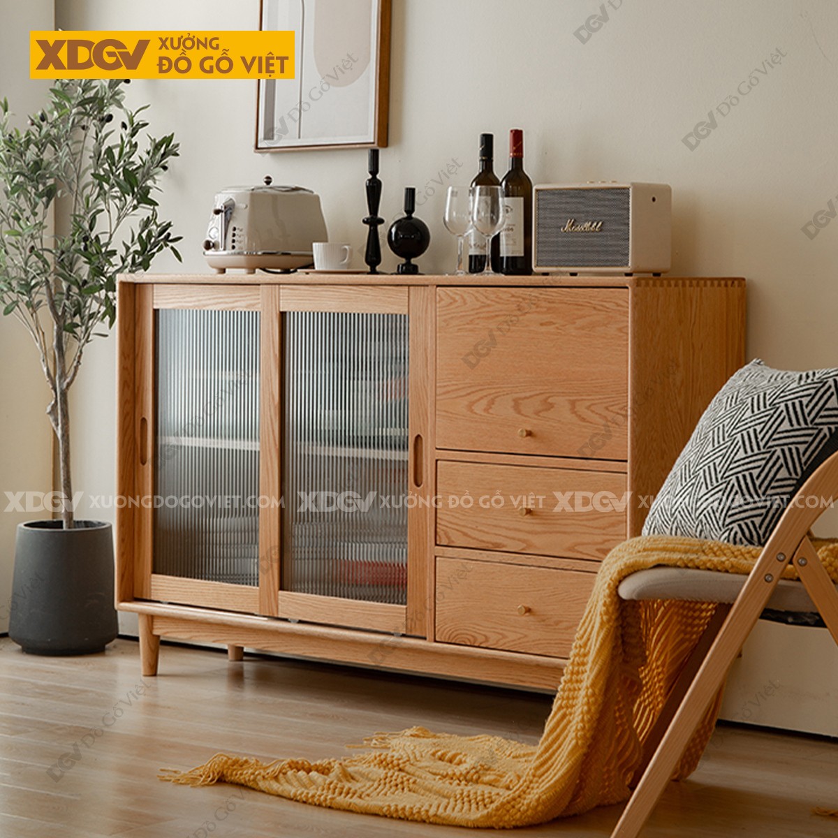 Tủ Chén Bát Gỗ Sồi X7448