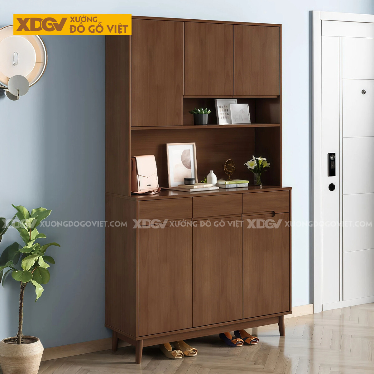 Tủ Để Giày Gỗ Cao Su Phối Ngăn Tủ Phía Trên Lưu Trữ Rộng Rãi