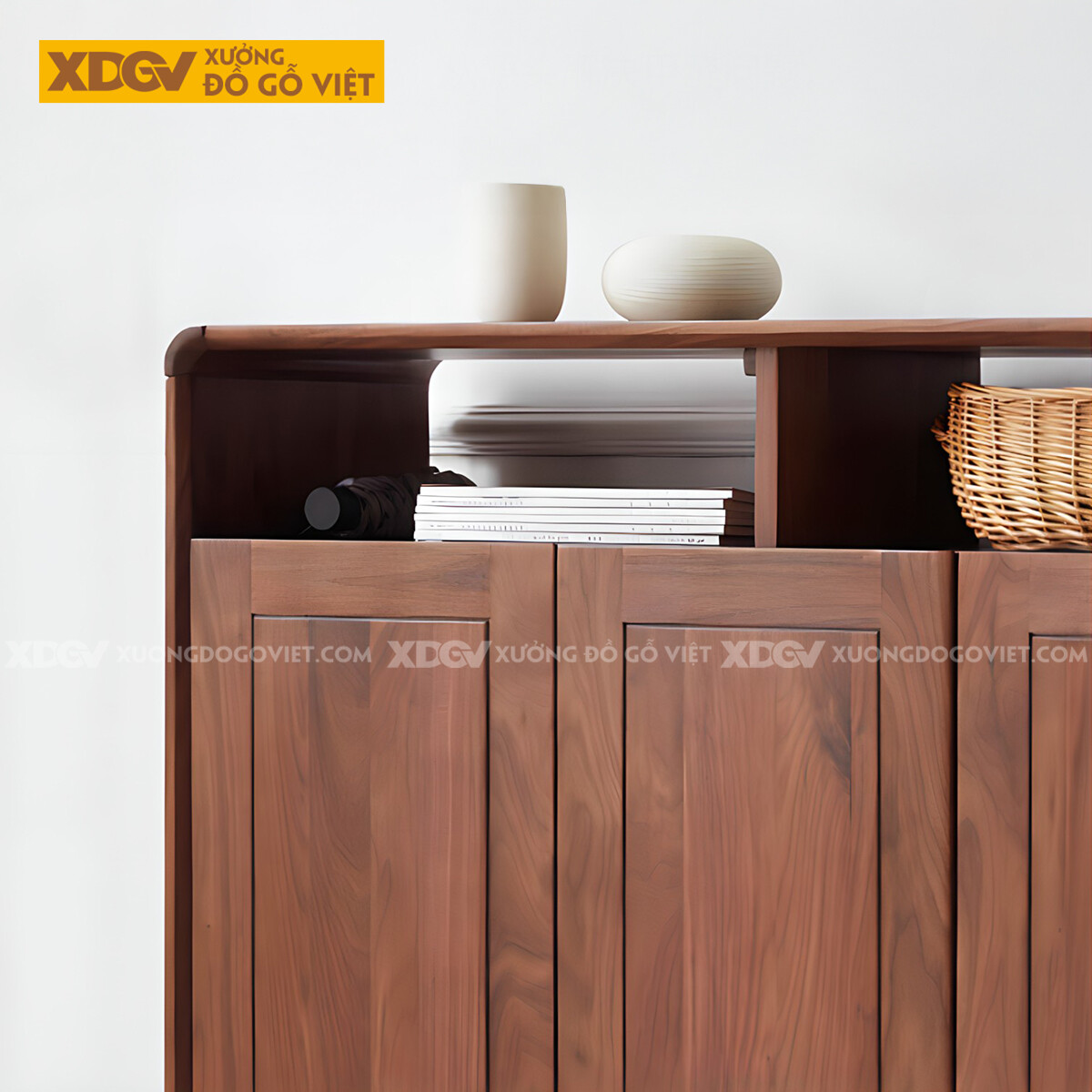 Tủ Đựng Giày Óc Chó Bo Tròn Góc Cánh Pano Vân Gỗ Tự Nhiên