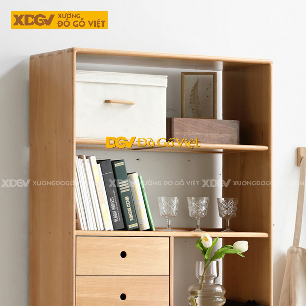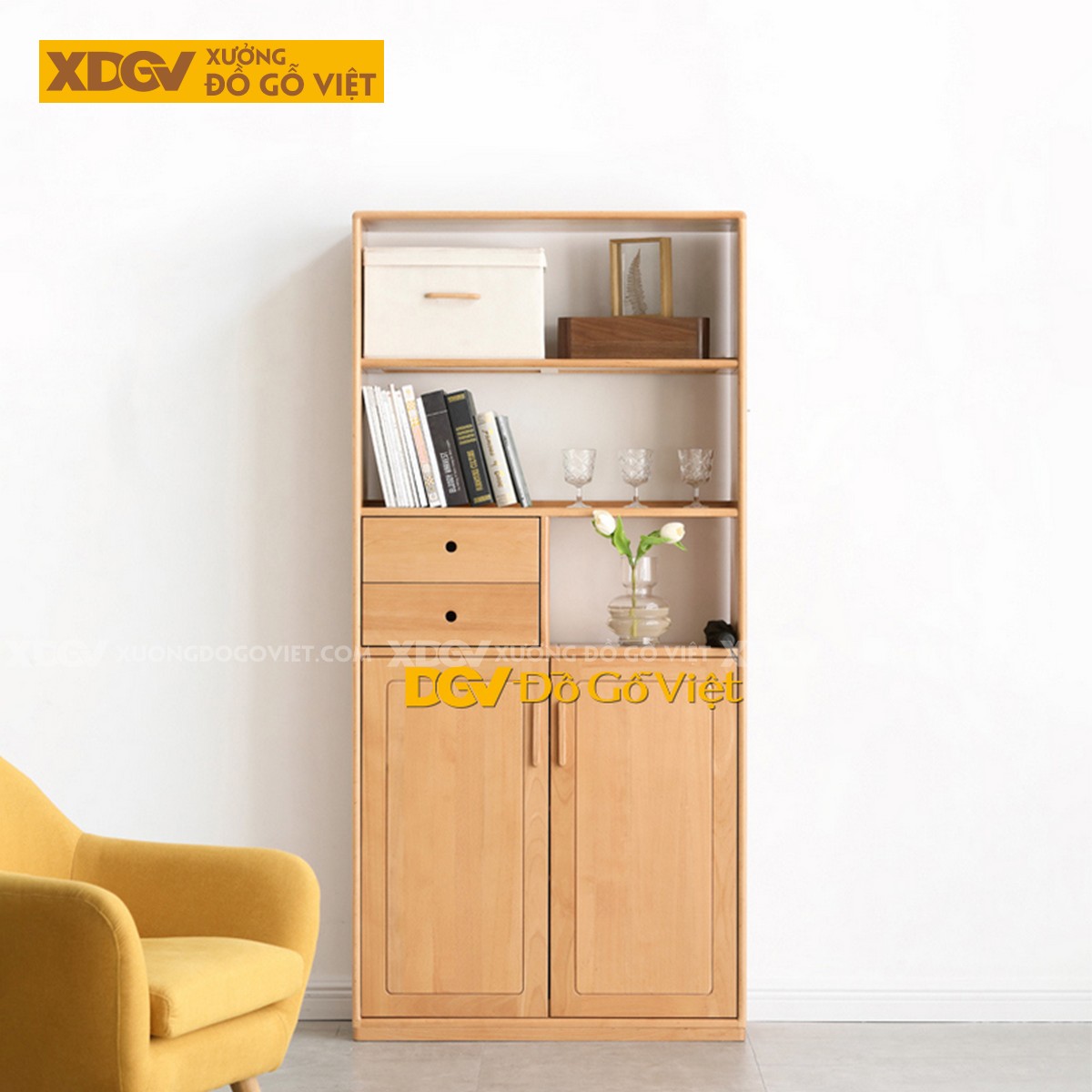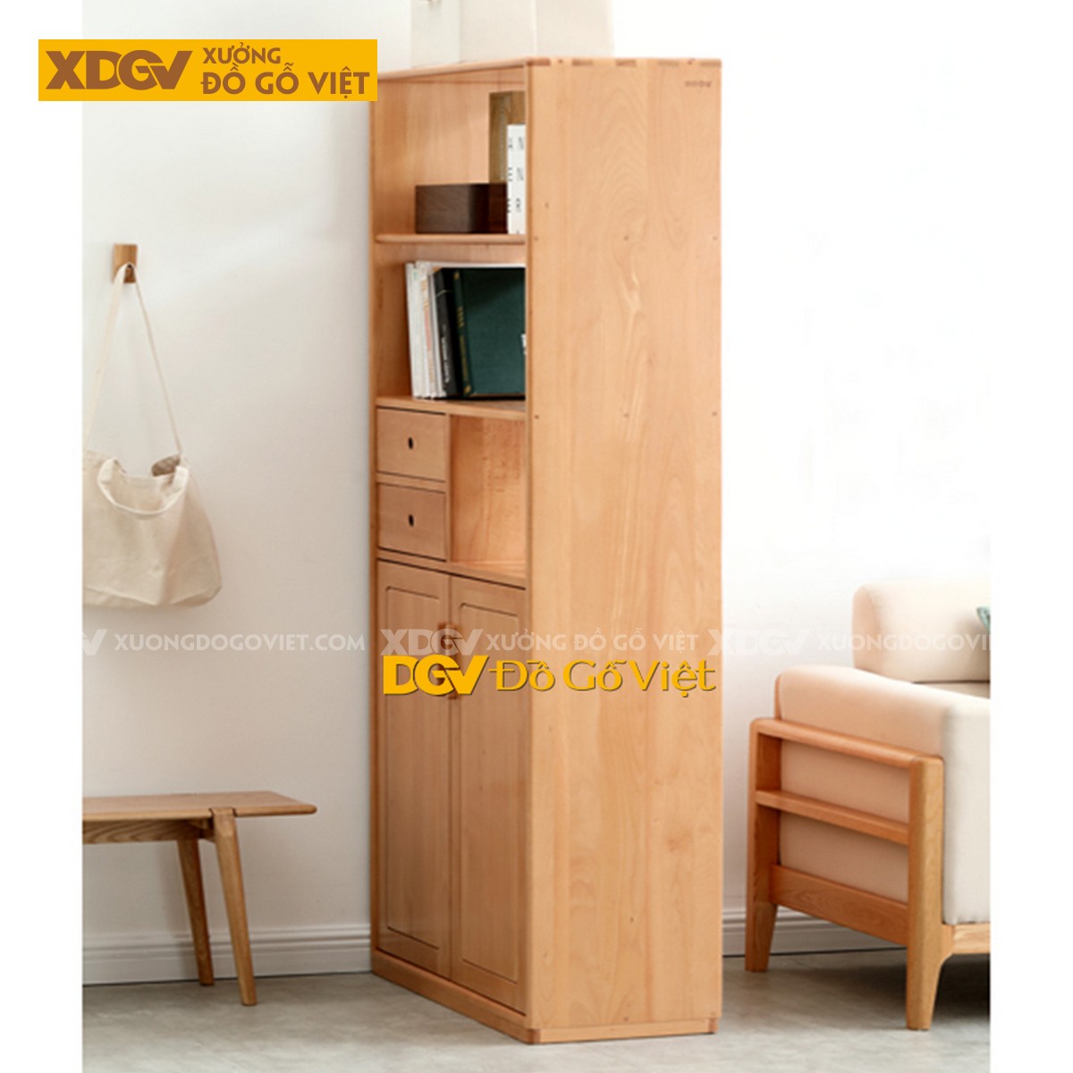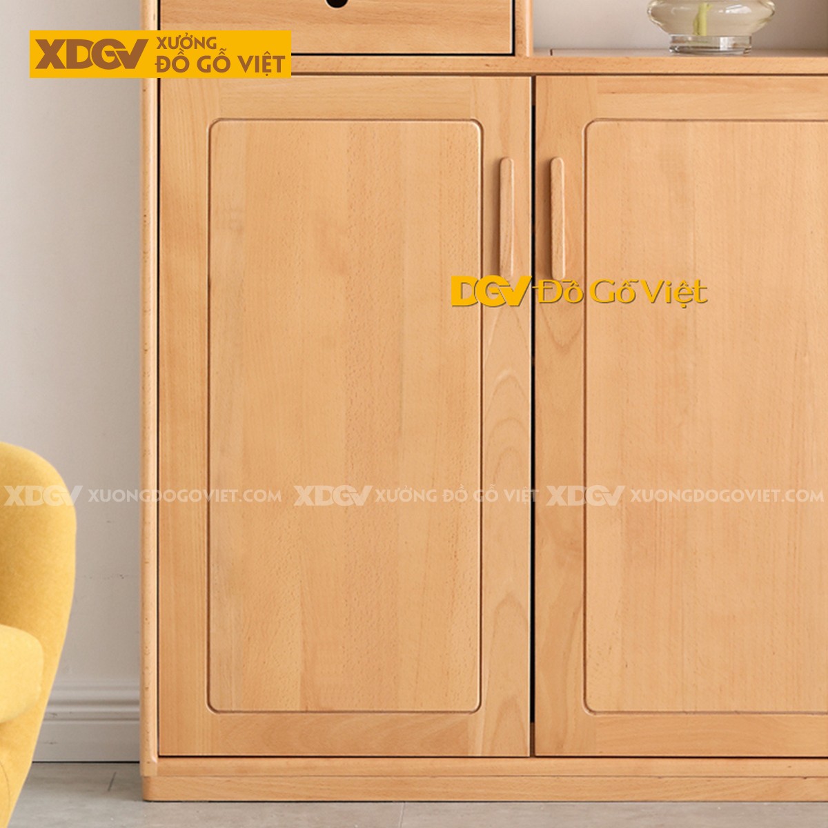 Tủ Đựng Giày Gỗ Sồi Chân Cao Cánh Bo Góc Ngăn Kéo Trên