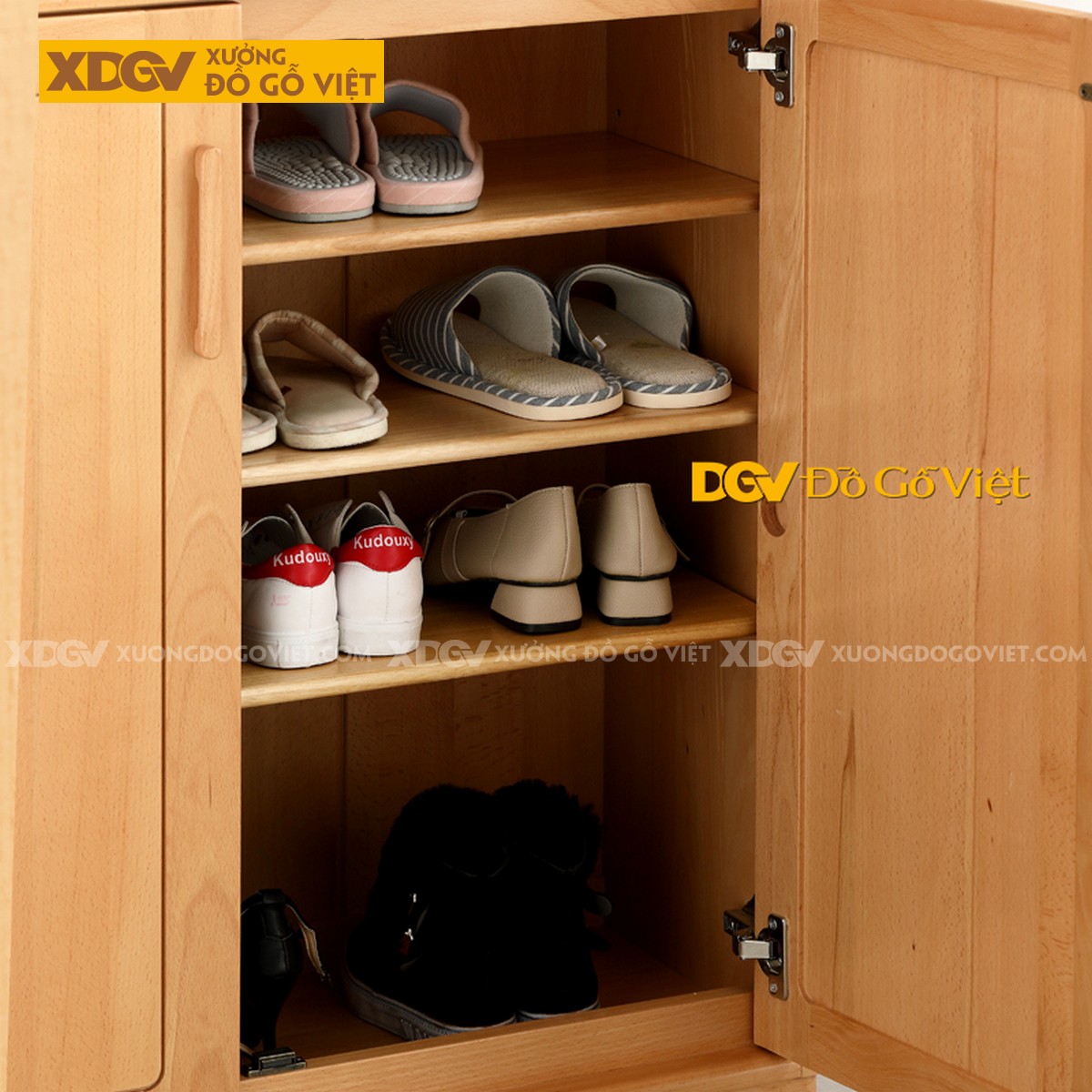 Mẫu Tủ Giày Mini Gỗ Sồi Tự Nhiên 2 Cánh 4 Tầng Có Kệ Trên