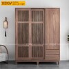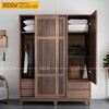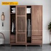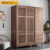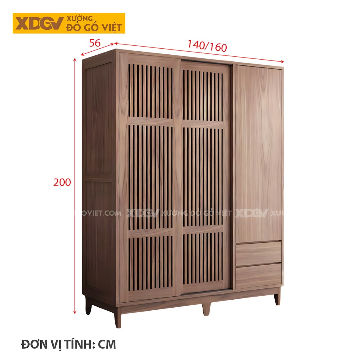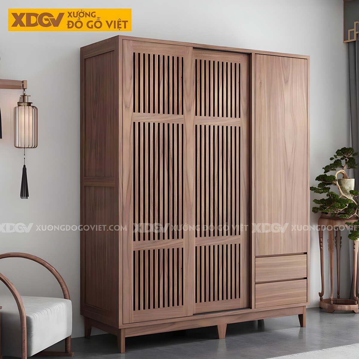 Tủ Gỗ Quần Áo Veneer Óc Chó 3 Cánh Cửa Lùa Pano Thanh Nan