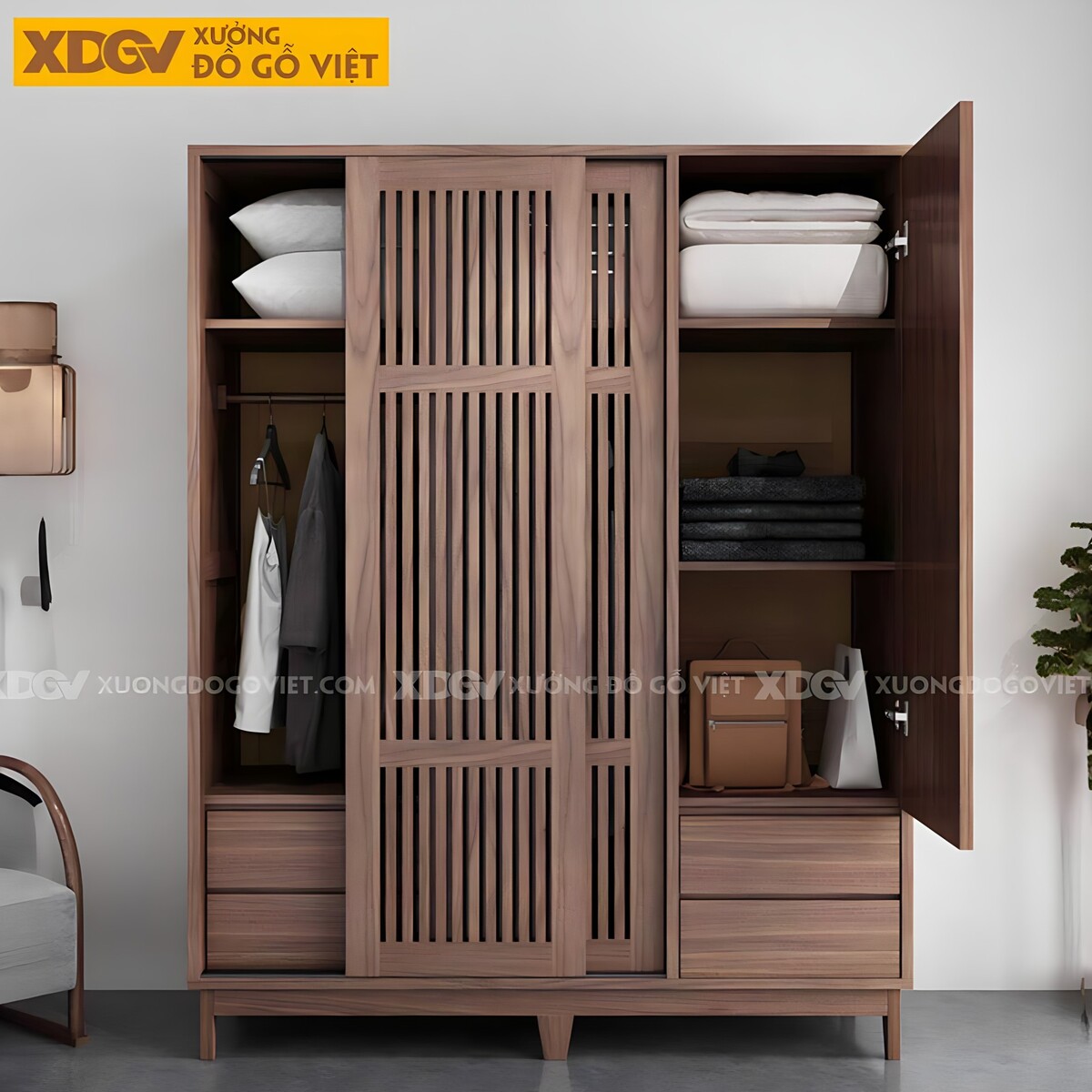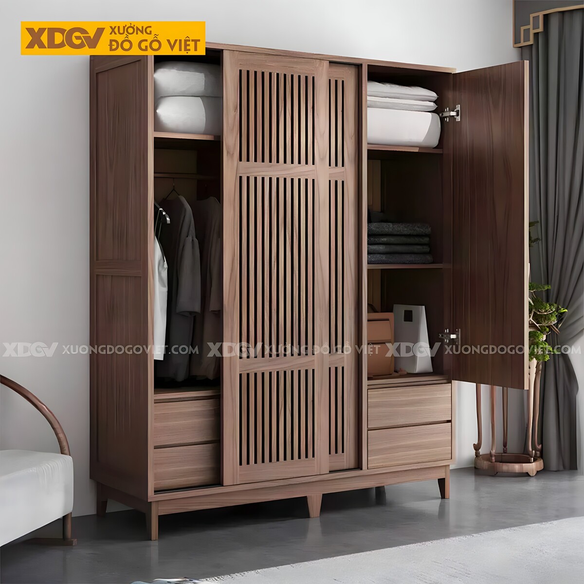 Tủ Gỗ Quần Áo Veneer Óc Chó 3 Cánh Cửa Lùa Pano Thanh NanTủ Gỗ Quần Áo Veneer Óc Chó 3 Cánh Cửa Lùa Pano Thanh NanTủ Gỗ Quần Áo Veneer Óc Chó 3 Cánh Cửa Lùa Pano Thanh Nan