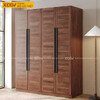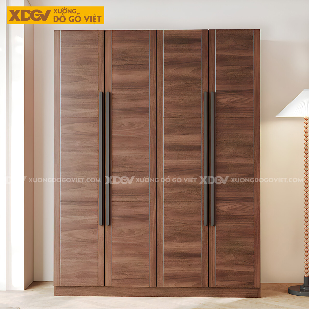 Tủ Gỗ Quần Áo Veneer Óc Chó 4 Cánh Phẳng Tay Nắm Đen Dài