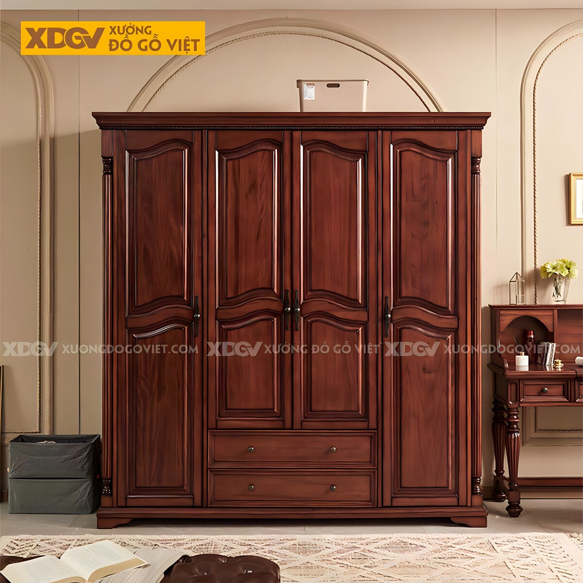 Tủ Quần Áo Gỗ Căm Xe Cổ Điển Hoàng Gia Chạm Khắc Tinh Xảo
