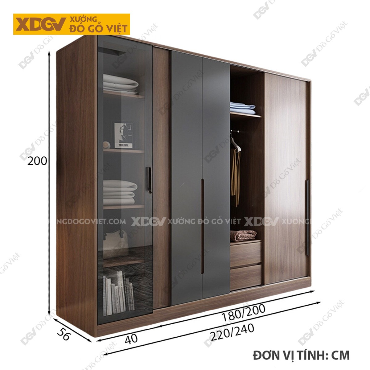 Tủ Quần Áo Gỗ MDF Công Nghiệp X1298