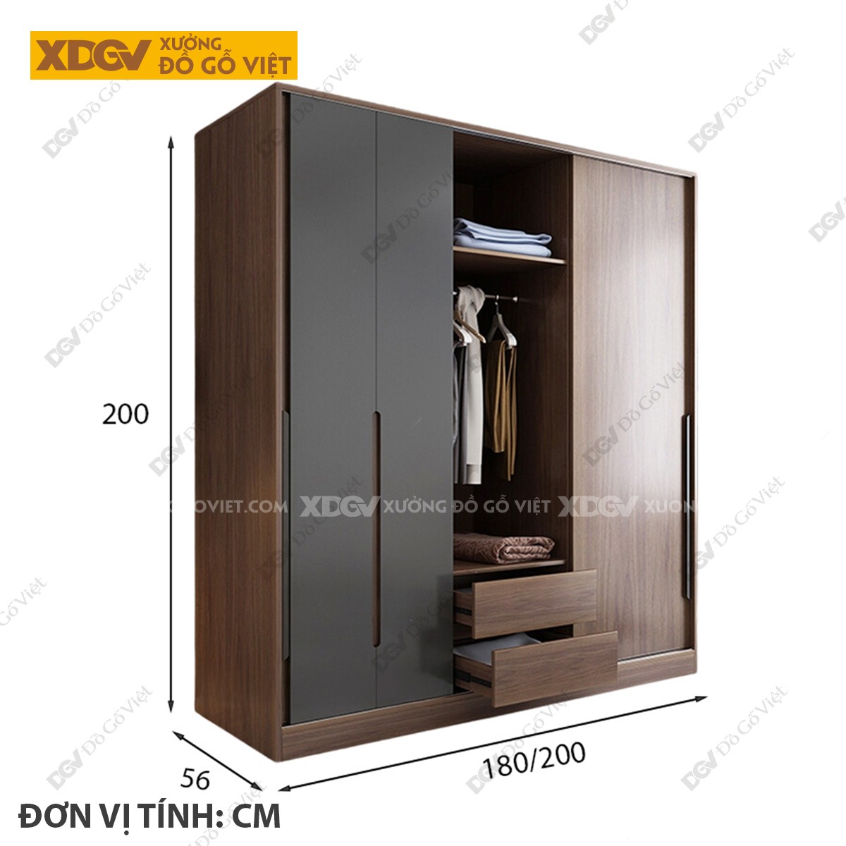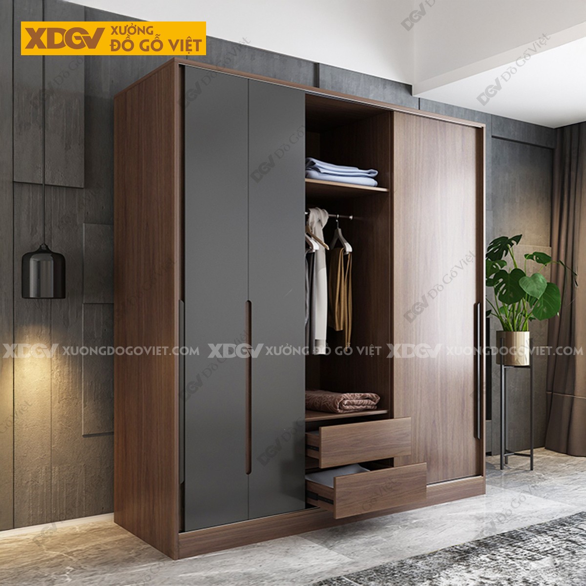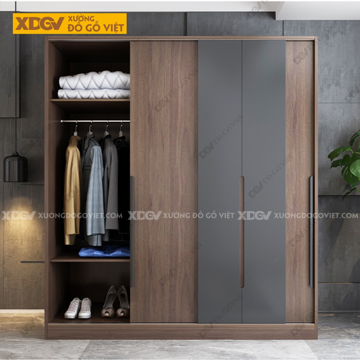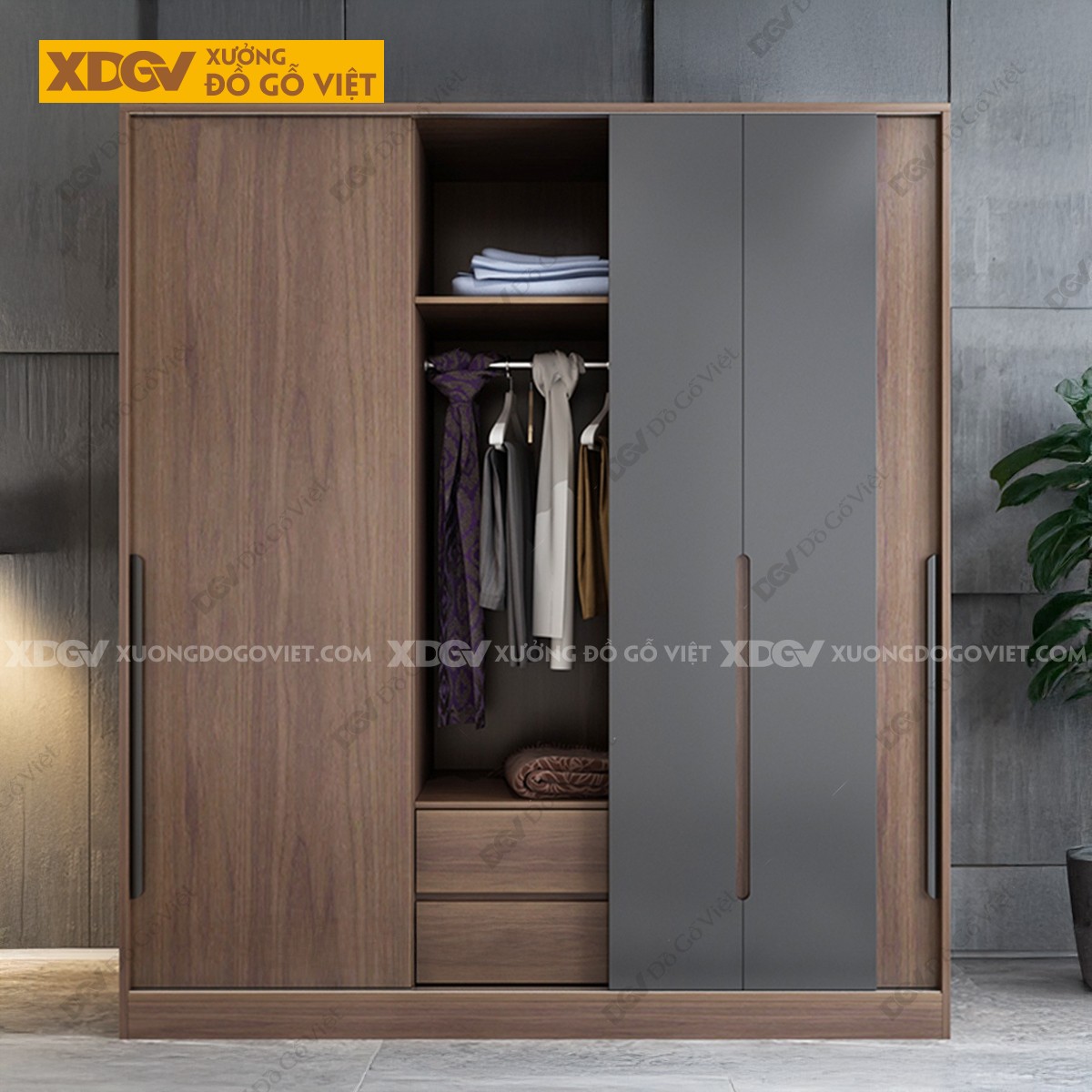 Tủ Quần Áo Gỗ MDF Công Nghiệp X1299