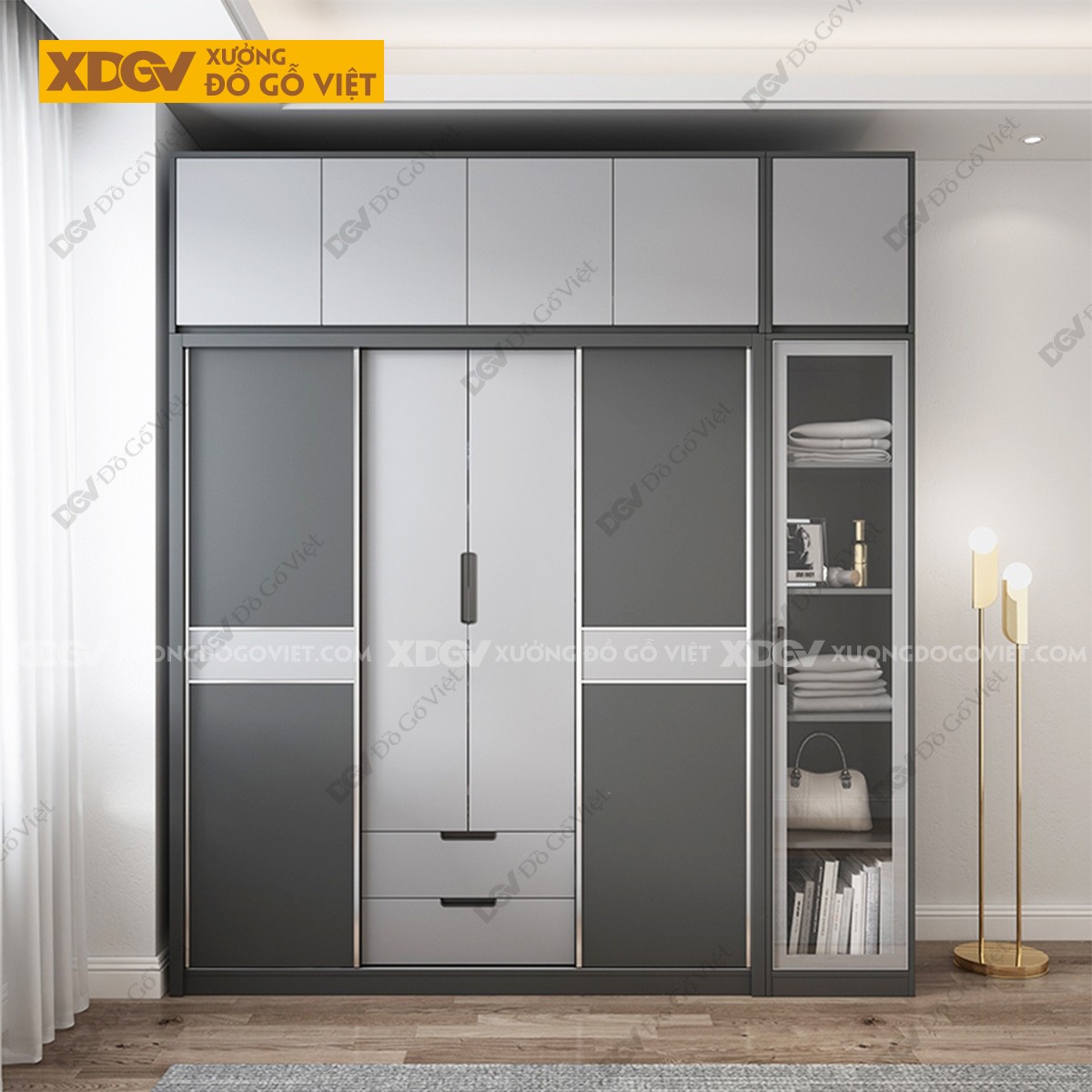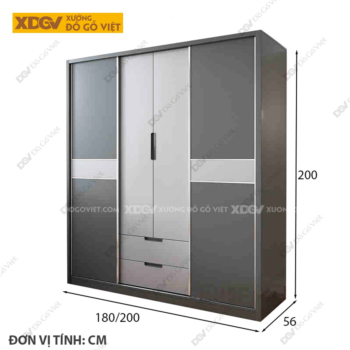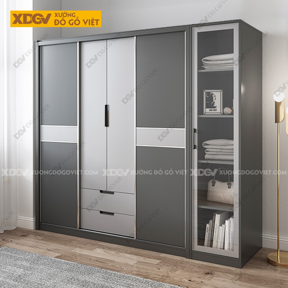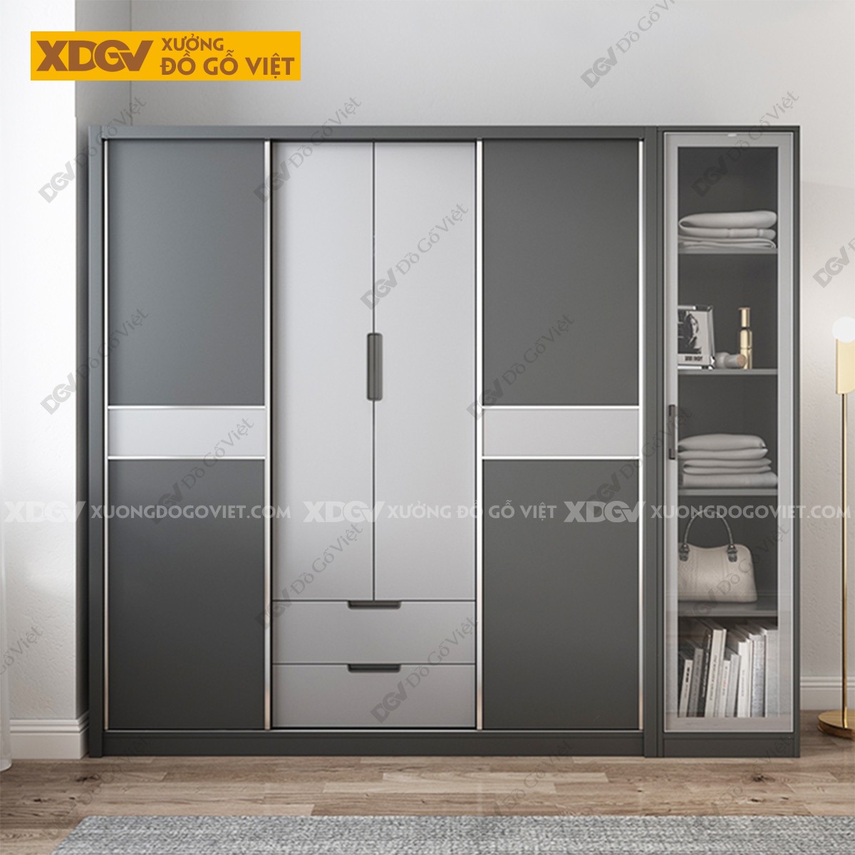 Mẫu Tủ Quần Áo Gỗ Công Nghiệp MDF Cánh 2 Màu Độc Đáo