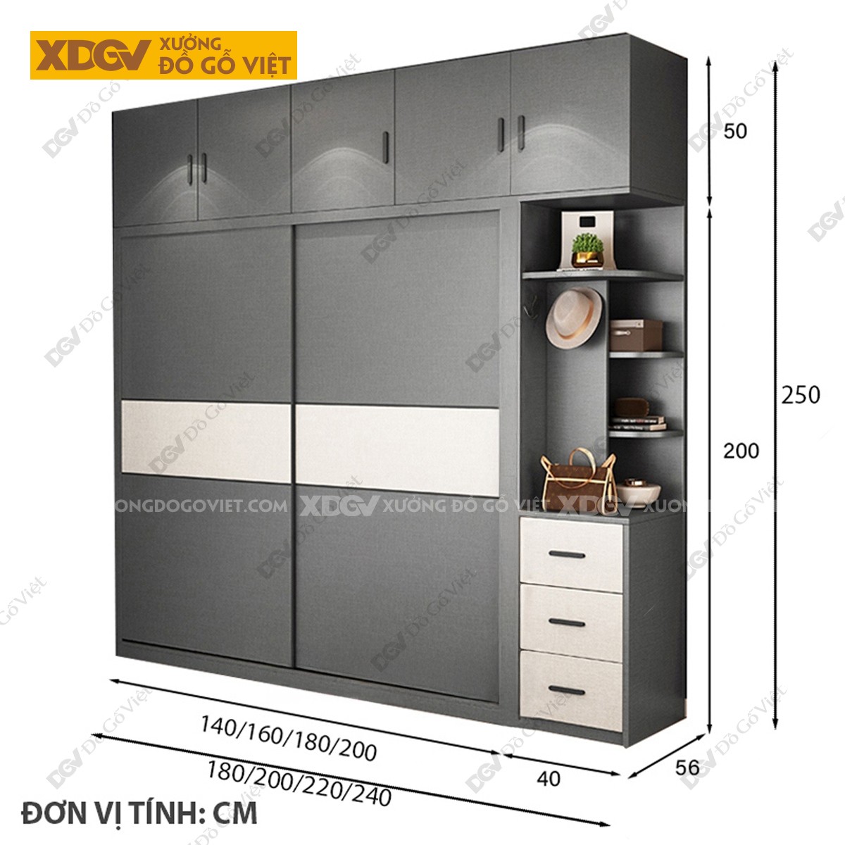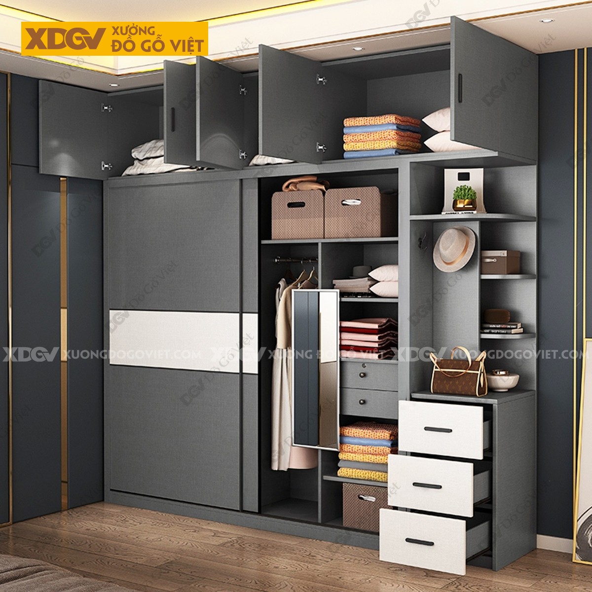 Tủ Áo Gỗ Công Nghiệp Dạng Hộp Cửa Lùa 3 Cánh Linh Hoạt
