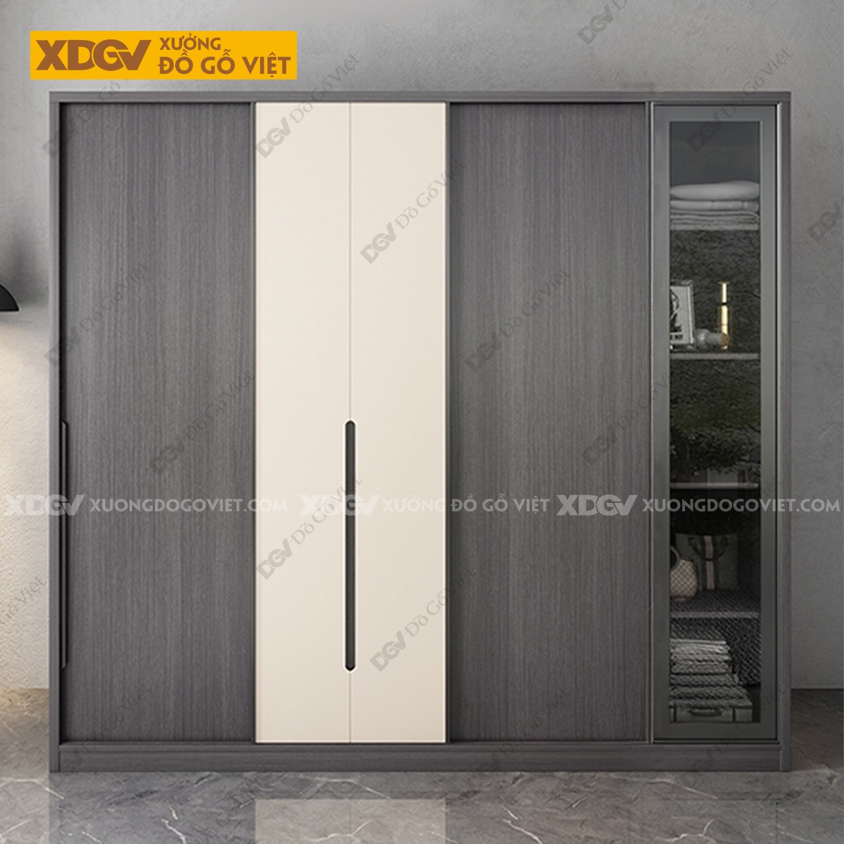 Mẫu Tủ Quần Áo Gỗ Công Nghiệp MDF Cánh 2 Màu Độc Đáo