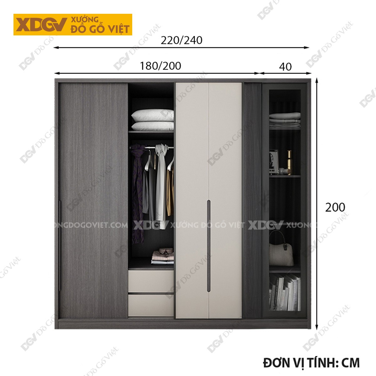 Tủ Quần Áo Gỗ MDF Công Nghiệp X1321