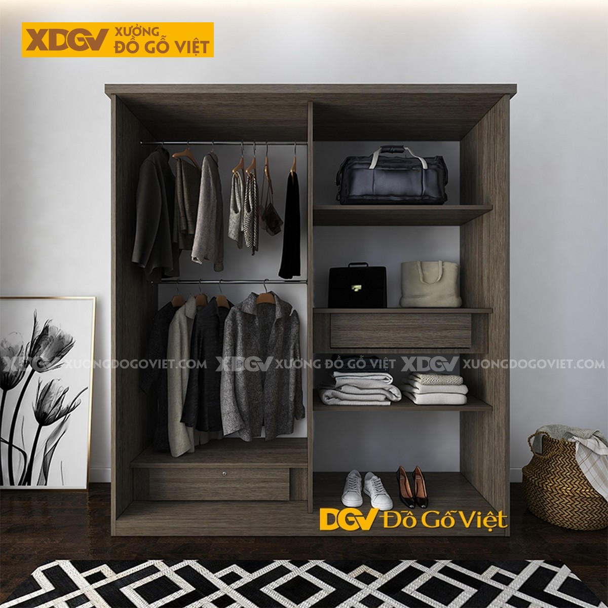 Hàng thi công theo yêu cầu. Chất liệu: MDF lõi xanh chống ẩm phủ Melamine chống trầy + sơn. Tình trạng: Hàng mới 100%. Trạng thái: Còn hàng. Thời gian giao hàng: Đặt hàng 7 đến 10 ngày.