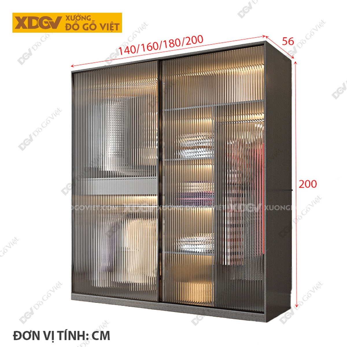 Tủ Áo Phòng Ngủ Gỗ MDF 2 Cánh Trượt Khung Nhôm Kính Trong