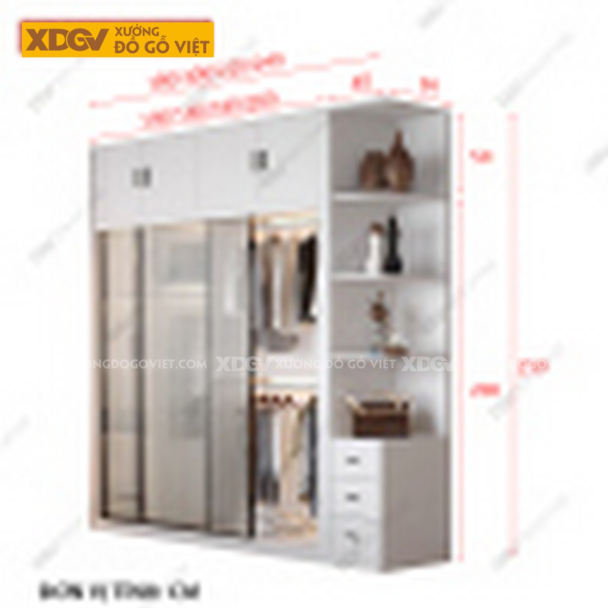 Tủ Quần Áo MDF Kết Hợp Bàn Trang Điểm Cánh Sơn Trắng Đẹp