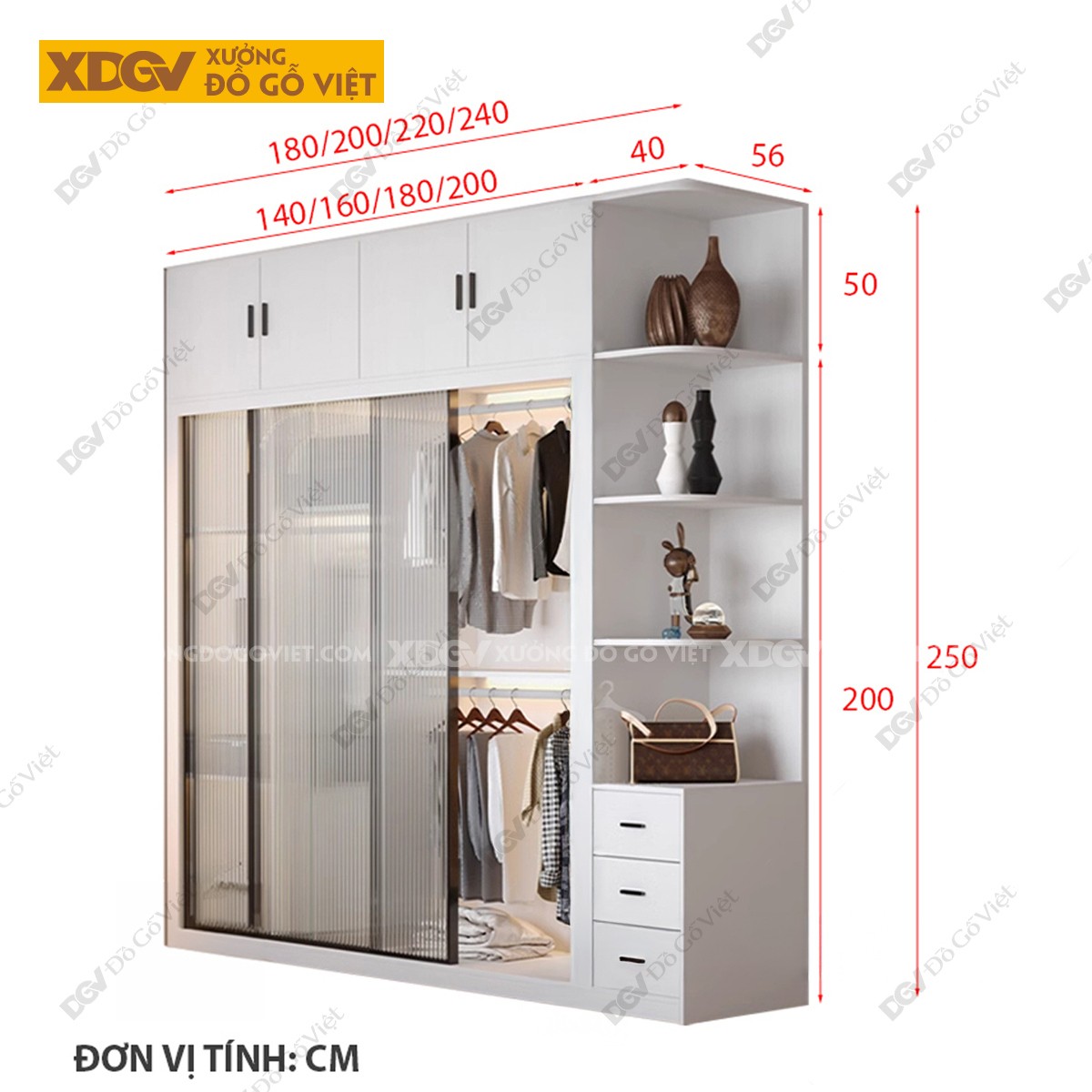 Tủ Áo MDF Phòng Ngủ Kết Hợp Bàn Học Và Kệ Trang Trí Độc...