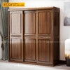 Tủ Quần Áo Gỗ Óc Chó Tự Nhiên Cửa Lùa Khung Pano Bo Góc Đẹp
