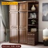 Tủ Áo Quần Đôi Gỗ Óc Chó Thịt Bo Góc Chân Cao Tay Âm Dưới