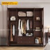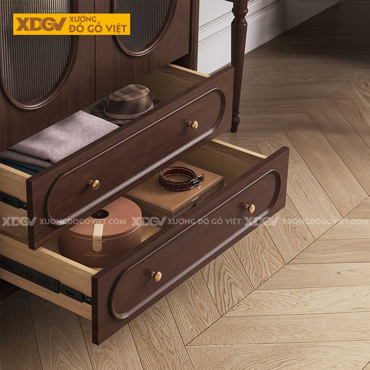 Tủ Áo Quần Đôi Gỗ Óc Chó Thịt Bo Góc Chân Cao Tay Âm Dưới