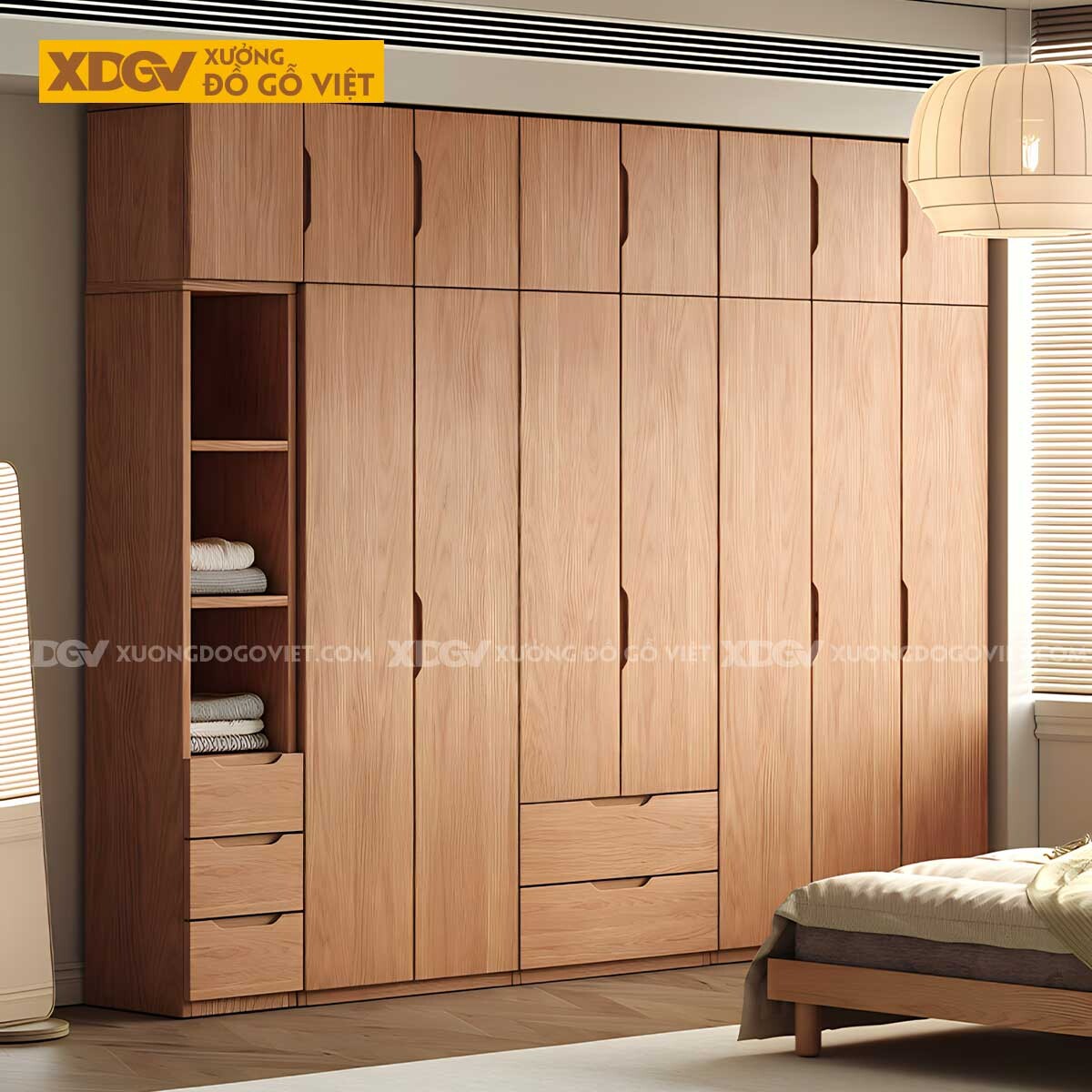Tủ Quần Áo Gỗ Sồi Kịch Trần 6 Buồng Không Gian Lưu Trữ Lớn