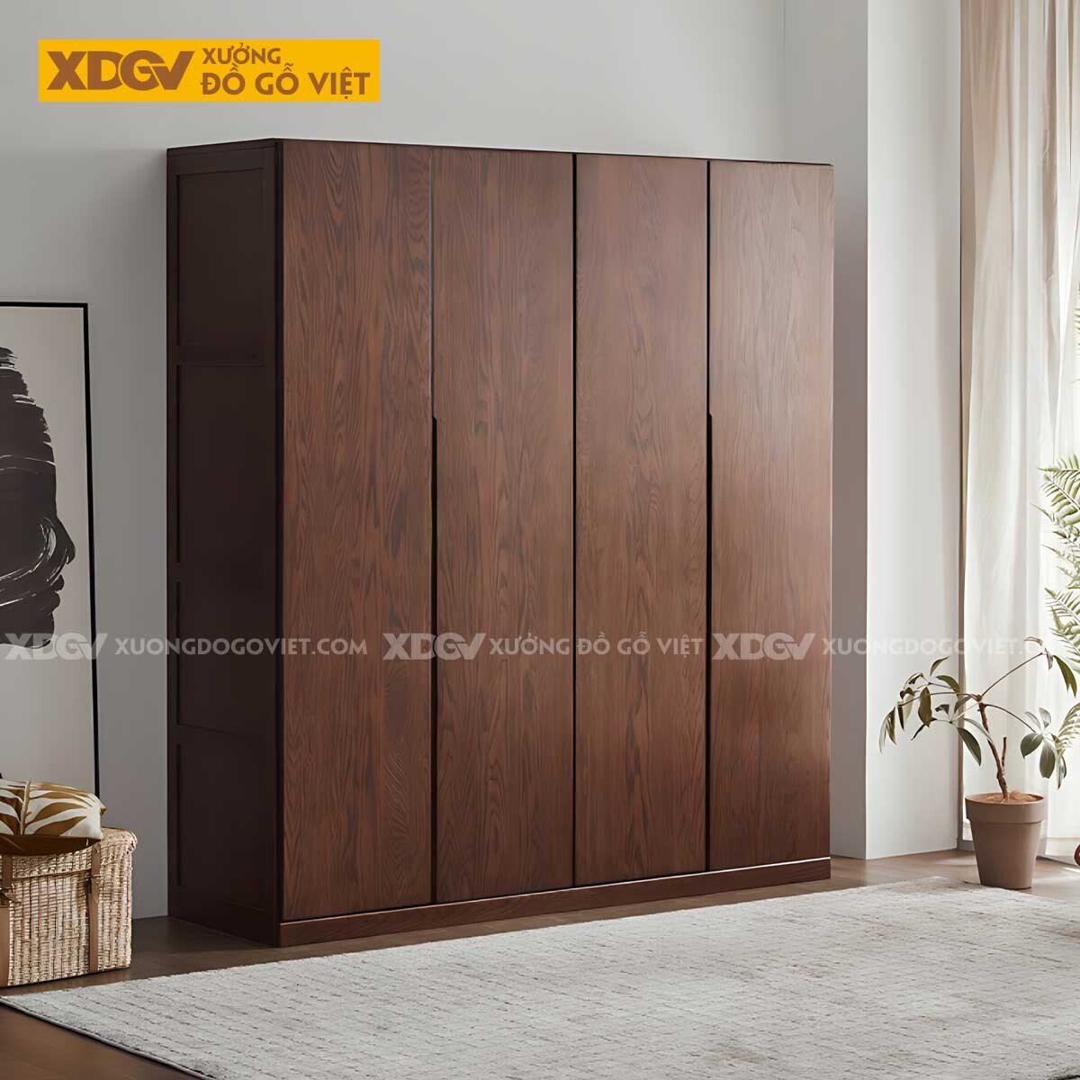 Tủ Quần Áo Gỗ Sồi Thịt Khung Pano Kẻ Rãnh Có Cánh Kính Trong