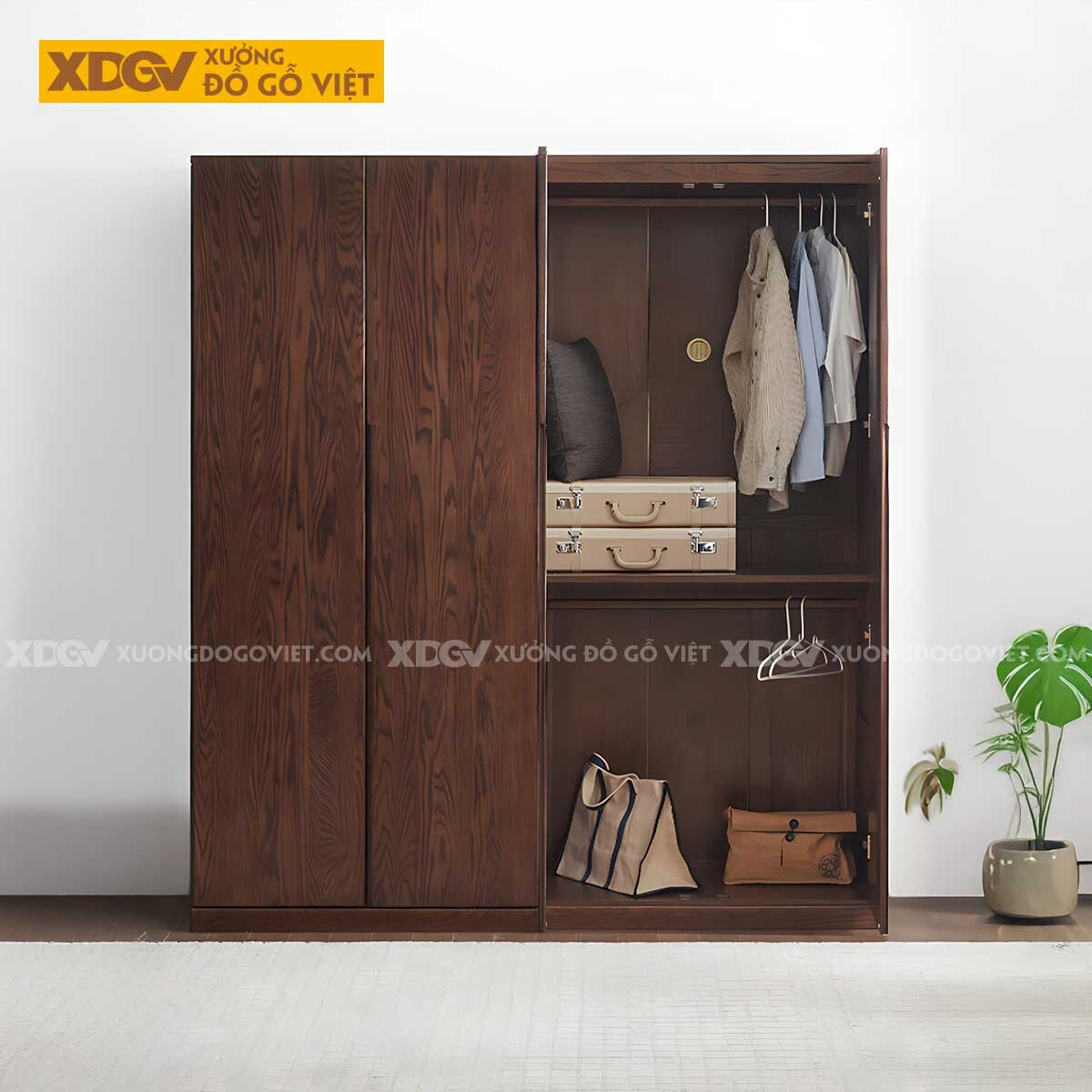 Tủ Áo Gỗ Veneer Sồi Hiện Đại Tối Giản Màu Óc Chó Sang Trọng