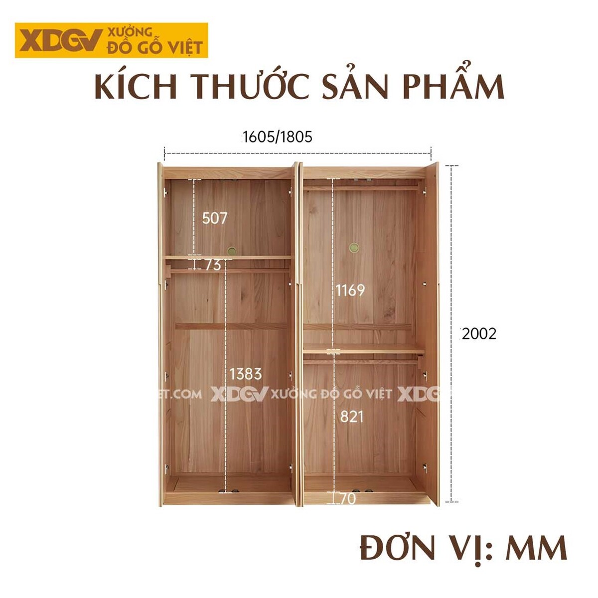 Tủ Quần Áo Gỗ Sồi Kịch Trần 6 Buồng Không Gian Lưu Trữ Lớn