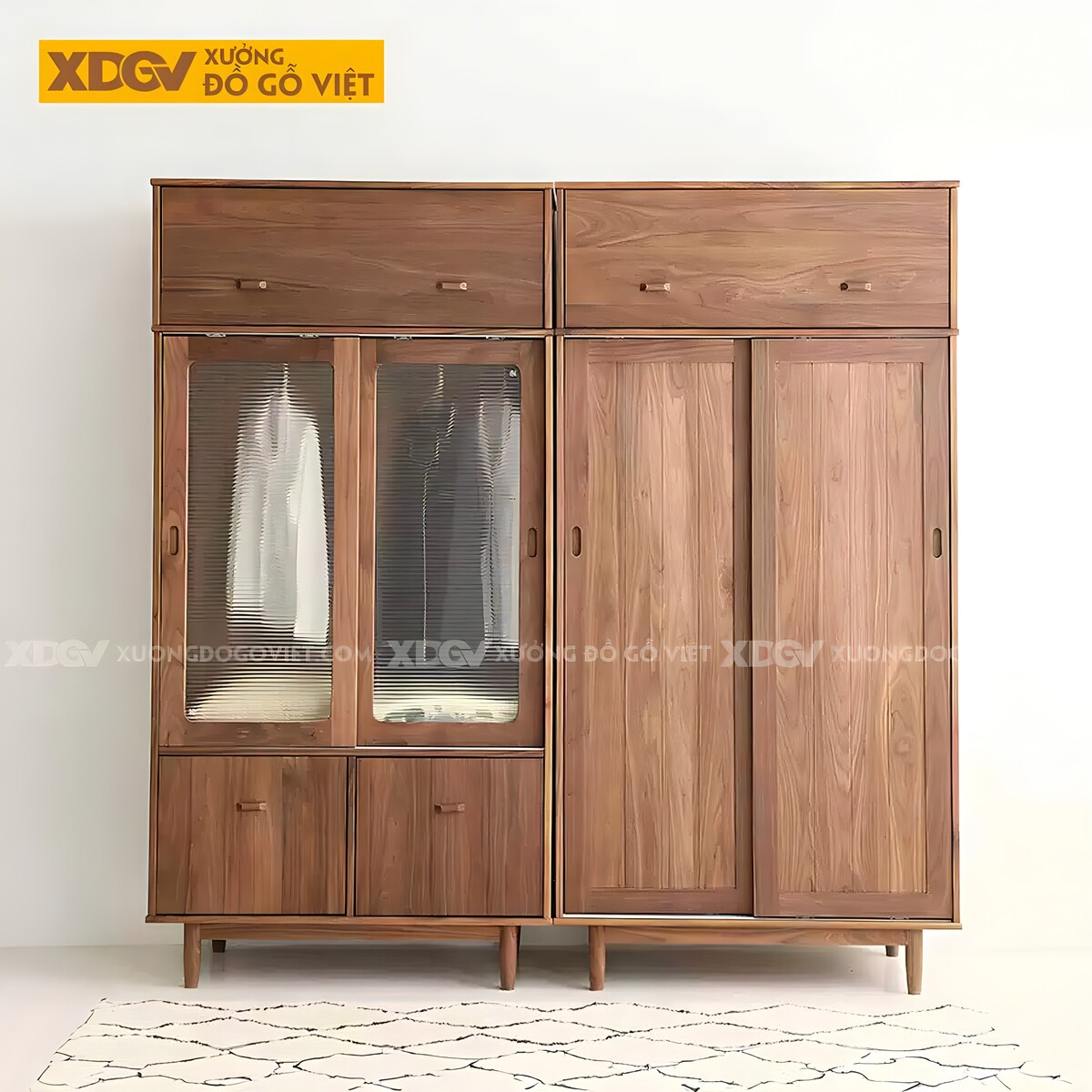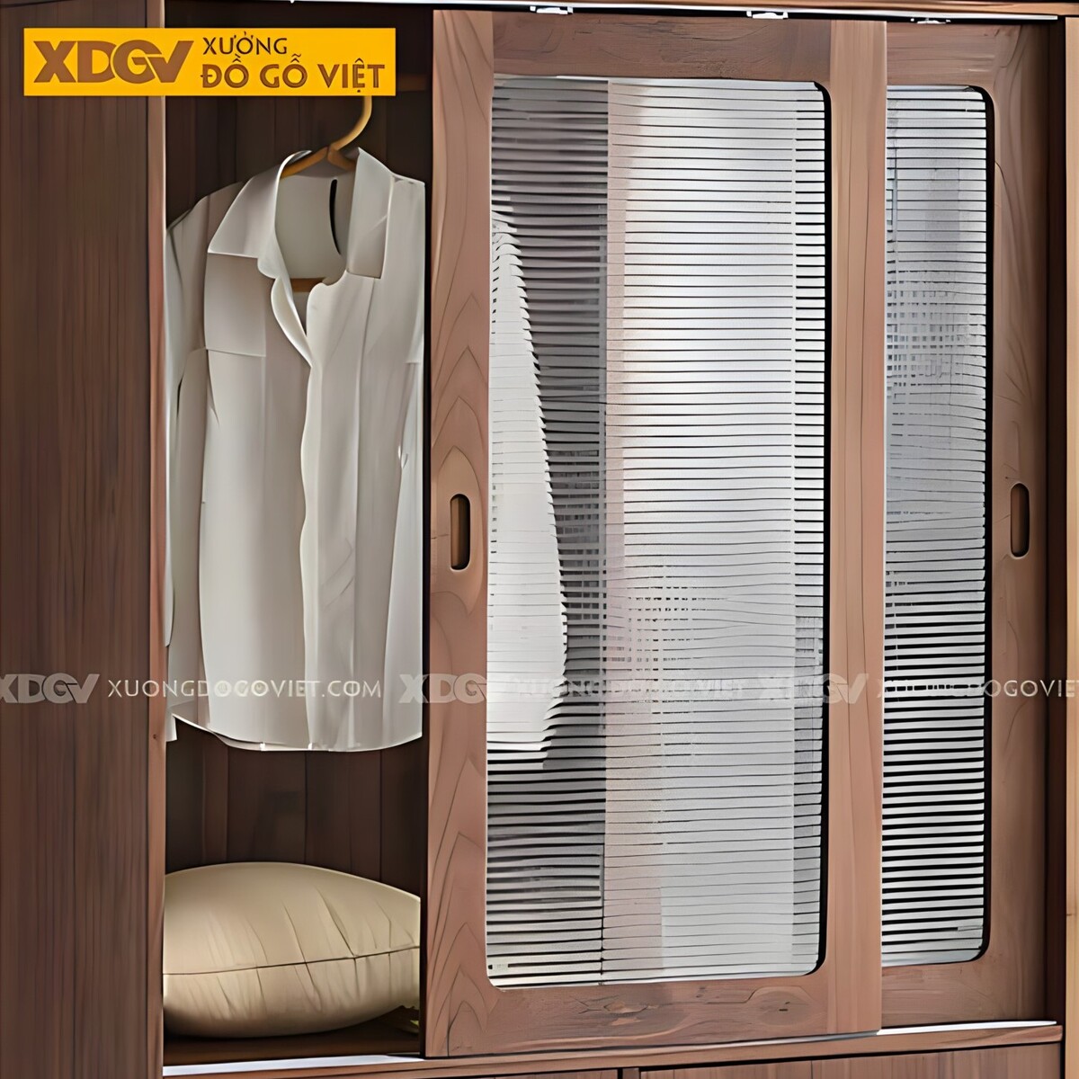 Tủ Quần Áo Óc Chó Hiện Đại Cửa Lùa 2 Hệ Loại Gỗ Và Kính Mờ