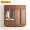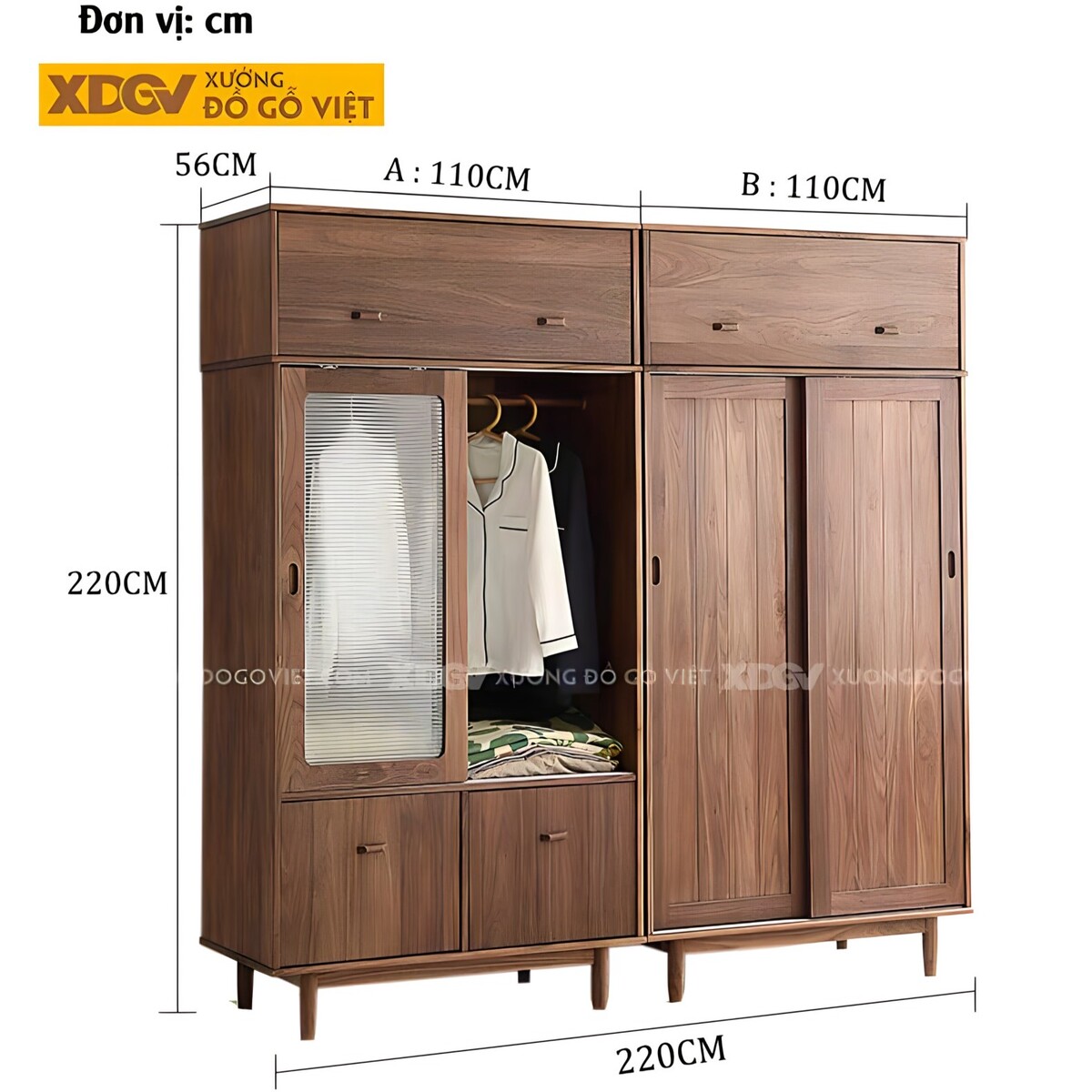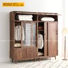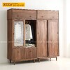 Tủ Áo Quần Đôi Gỗ Óc Chó Thịt Bo Góc Chân Cao Tay Âm Dưới