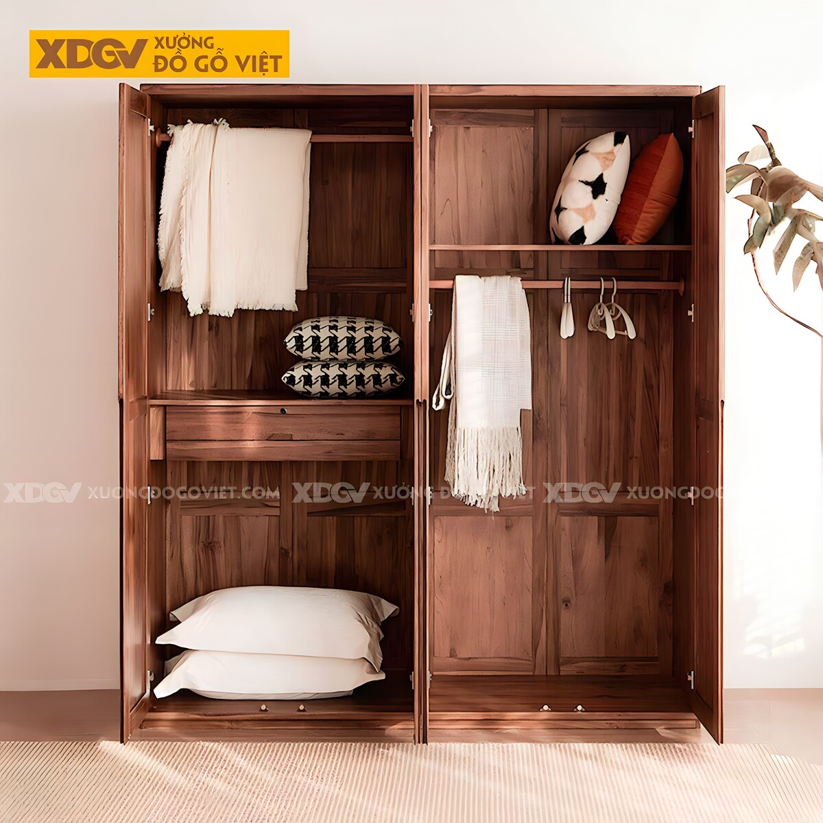 Tủ Quần Áo Óc Chó Thịt Tối Giản 4 Cánh Phẳng Tay Âm Dài