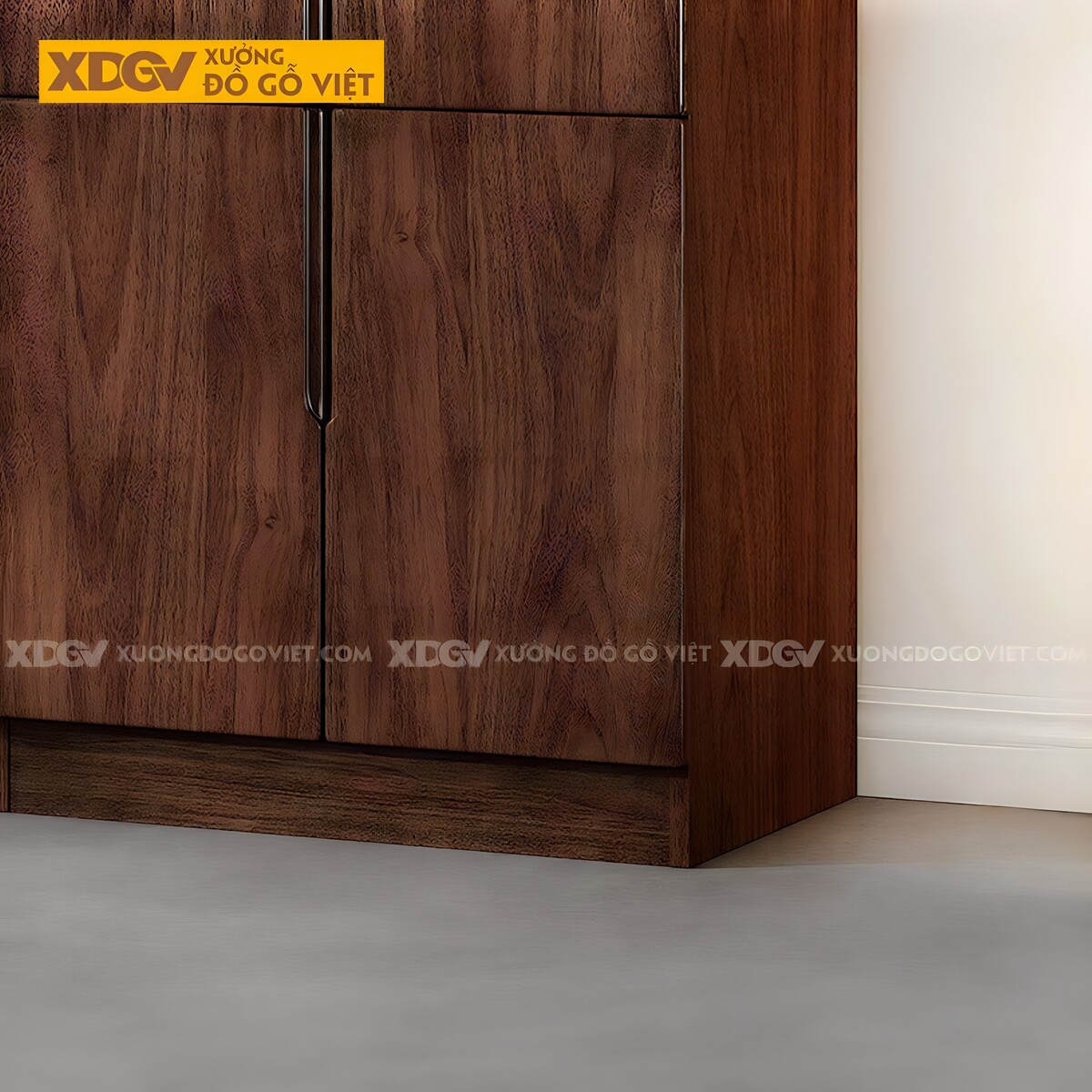 Tủ Áo Quần Đôi Gỗ Óc Chó Thịt Bo Góc Chân Cao Tay Âm Dưới