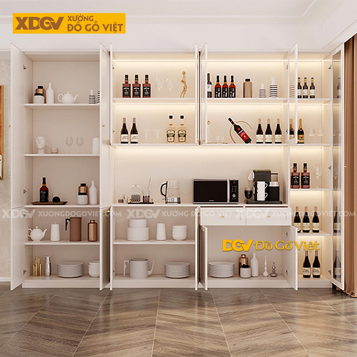 Mẫu Tủ Rượu MDF Phòng Khách Hiện Đại Đa Tầng Kèm Tủ Ngăn...